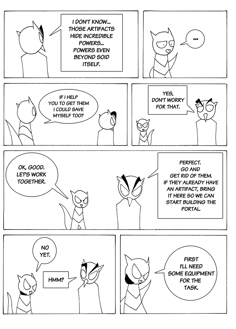 Nejo got instructions from Taldard, guardian of the artifact, and now is heading to Halkran alongside Odynob. Gazar managed to escape from the room Xelowl locked him up and after and conversation with him, Xelowl is about to tell him the mystery of the artifacts.