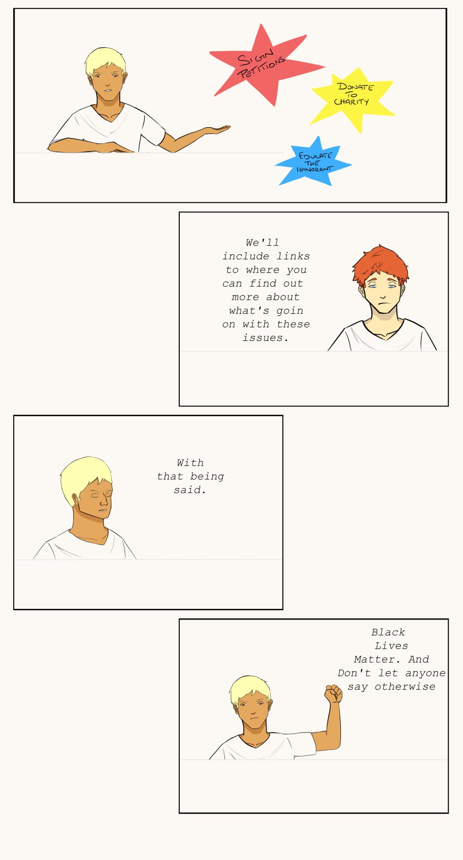 This is a divisive time. It isn't politics but human rights. Please use your voice to stand against systemic racism and oppression https://blacklivesmatters.carrd.co/