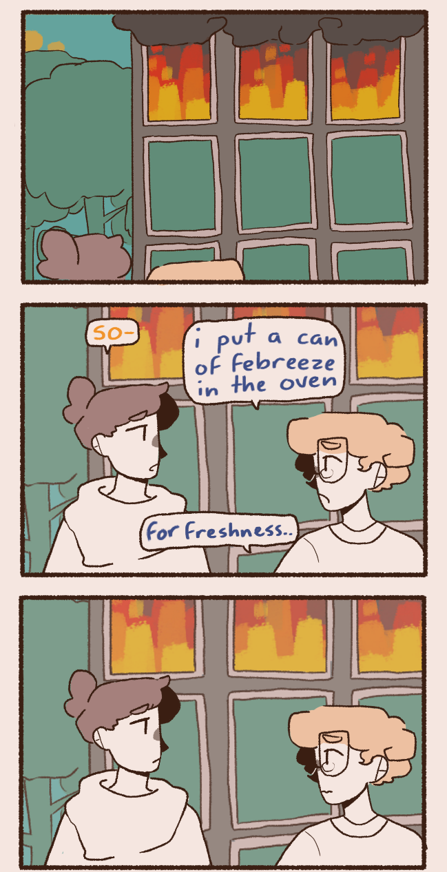 Ramen and Olivia are roommates in New City (i didn't forget york that's just what its called </3). They're two dumb motherfuckers but somehow Ramen gets good grades in university and Olivia always pays the rent on time. They basically only have each other, until two MORE dumb motherfuckers come along. Percy, a dumb little baby with no life experience, and Charles, Olivia's childhood friend and wannabe emo kid that has way too much time on his hands. they do funny stuff please read my comic