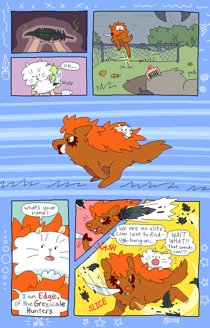 Most of the character designs were bought (adopted) from children on DeviantArt, resulting in a colorful cast of cats and dogs! The comic was made to be a love-letter to the creative minds of these kids. Credits to the original designers will be in the page description as they appear. The comic is all-ages.