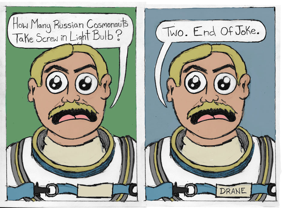 This Comic is Dedicated to Brian Stuhlman and Callina Johnmeyer who laughed when I said this all the way back in 2002. We had Russian Cosmonauts come visit our high school and they were very very dry. For some reason this just always stuck with me.