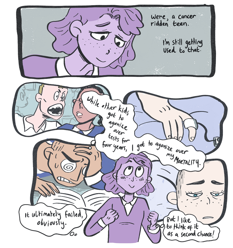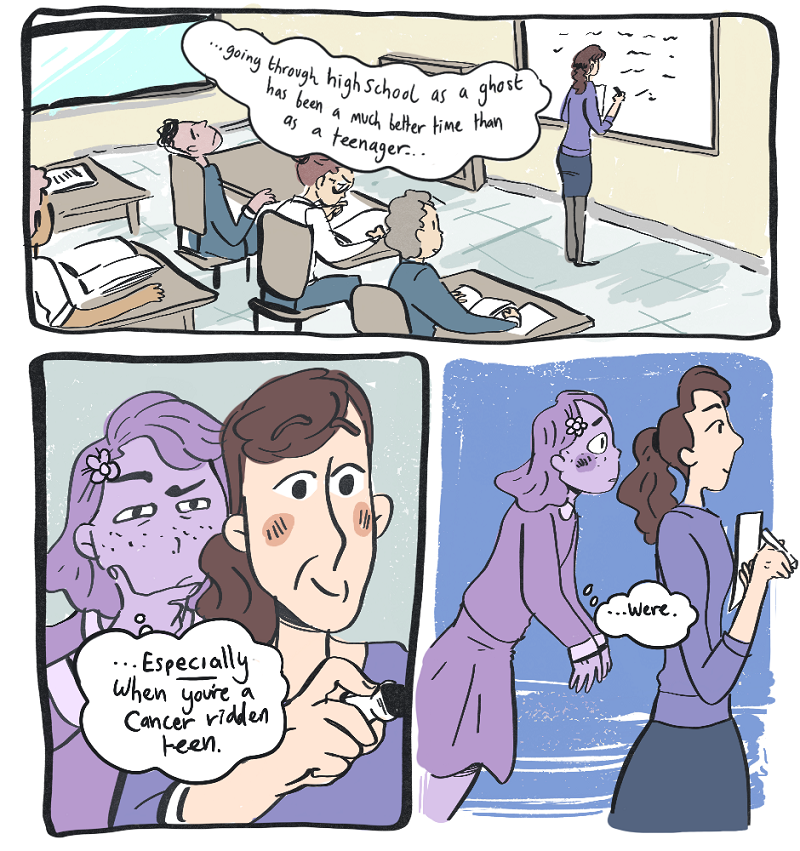 "while other kids got to agonize for four years over tests I had to agonize over my own mortality" this. This is hilarious and concerning ??? I seriously don't know how to feel about it. But I do like the humor and laughed x) I also wanna protect the ghostie !! But she seems to be doing fine 🌸