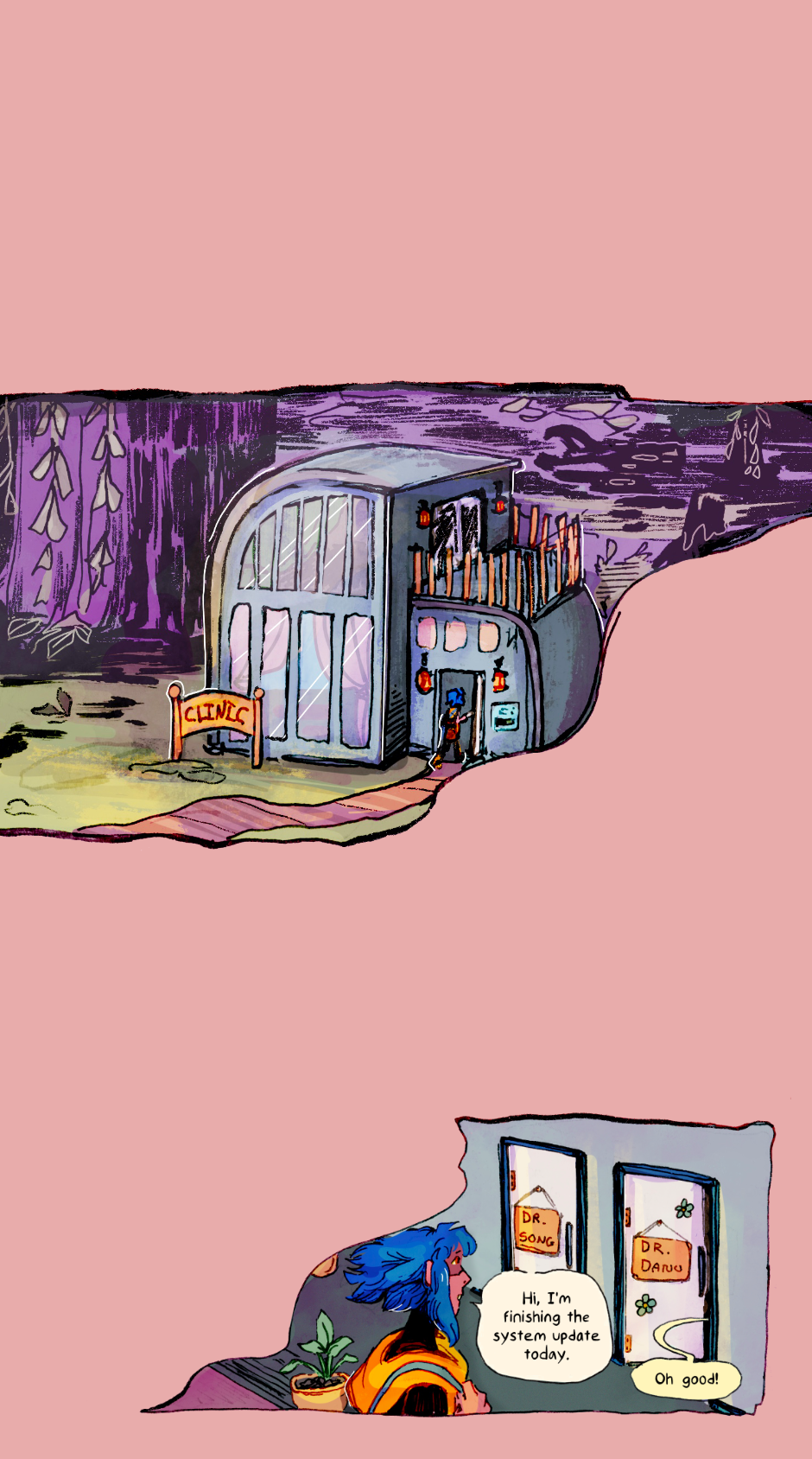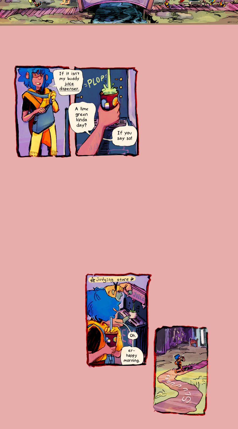 The hazy morning walk to work... also JUICE. Hmmmm I wonder if any of these new characters are important later... (the answer is Yes.)