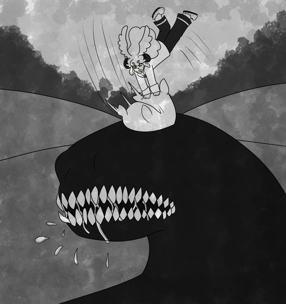 #Fantasy #black_and_white #horns #Monster #dream #Dreamworld #wings #fun #Action #pillow