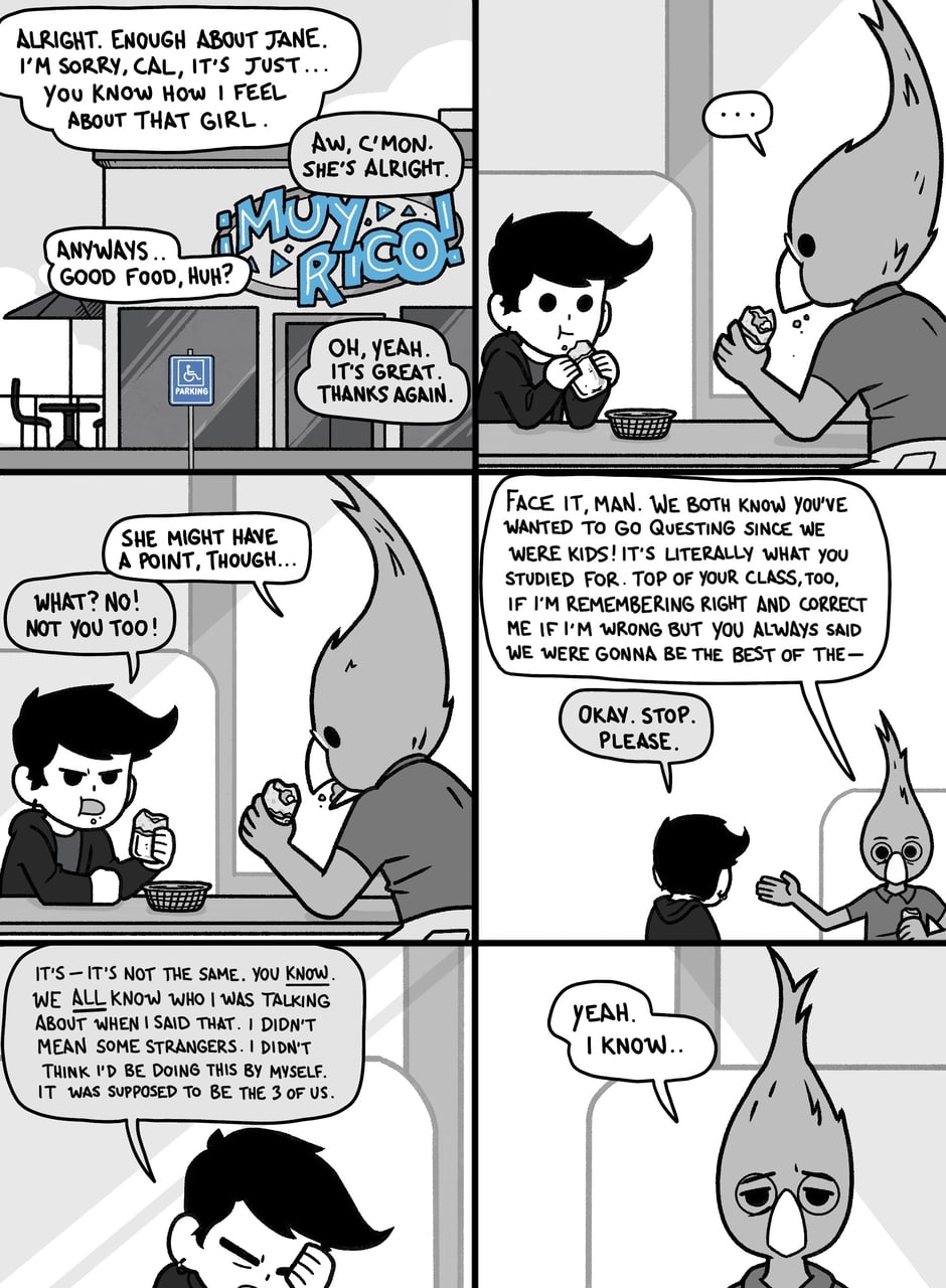 Just been fired from a dead-end retail job that you poured too many years of hard work into? Dropped out of school due to crippling depression? Got nothing better to do? Take up questing! Everyone's doing it these days! How dangerous could it be? Amidst the droll transition of youth to age, a trio of friends will find that maybe it's time for something adventurous...?