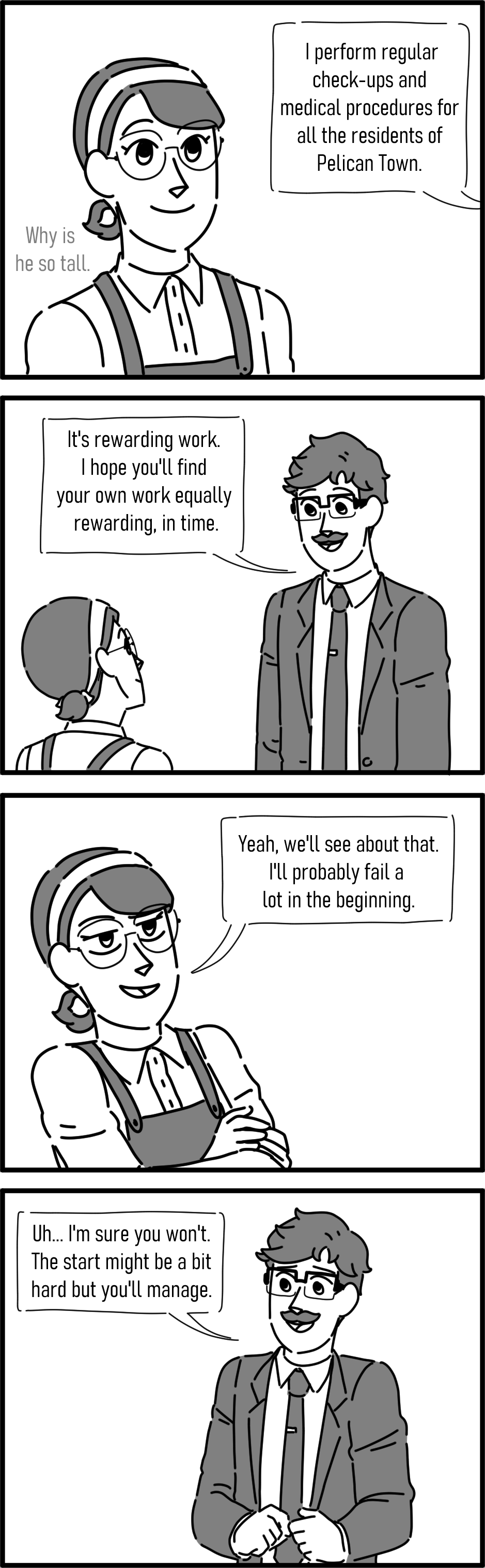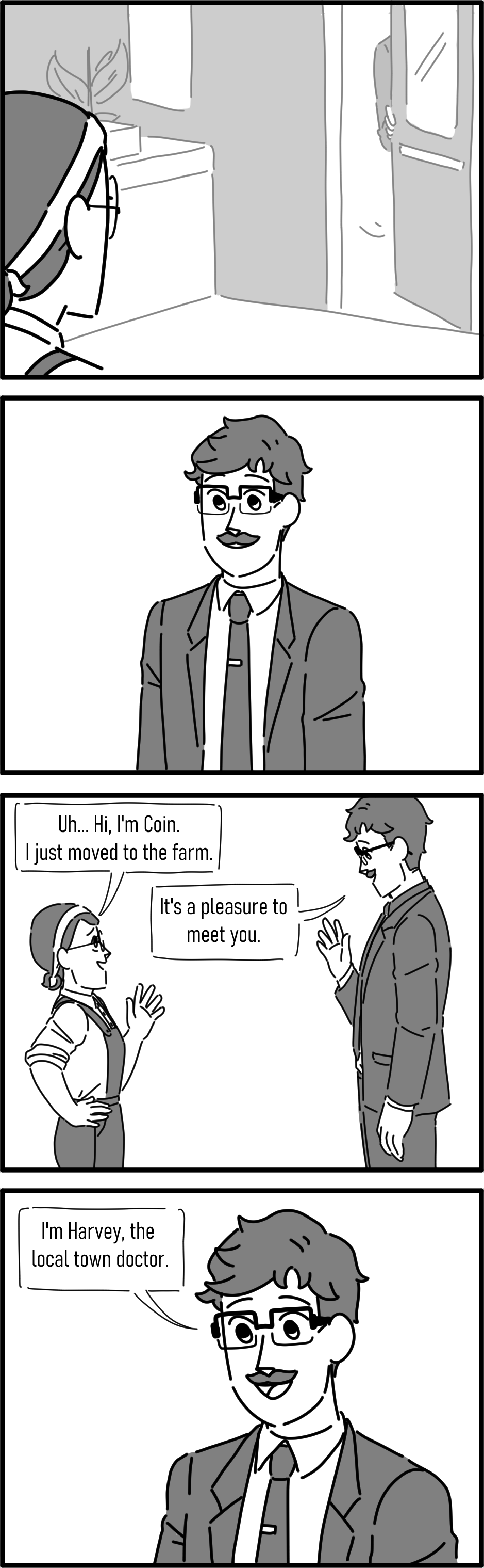 When Farmer Coin arrives to Pelican Town, she immediately catches Doctor Harvey's eye. Will he be able to overcome his shy nature to reach out to this charming, if not oblivious, woman and win her heart?