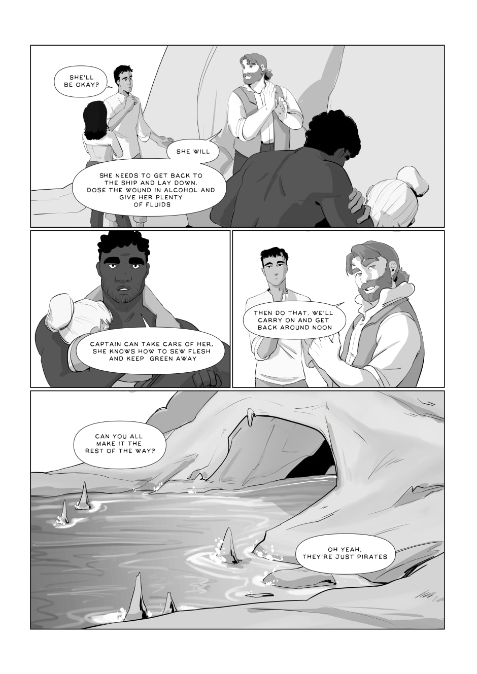 They set upon their journey to explore the island, not to find the ship, but to find the loot that it carried.