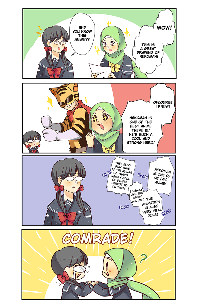 Follow the adventures of Aya and her friends as she establishes the Muslim Manga club in her high-school. "Aya is a little.. how do I say it nicely? so... very energetic. " - Sura