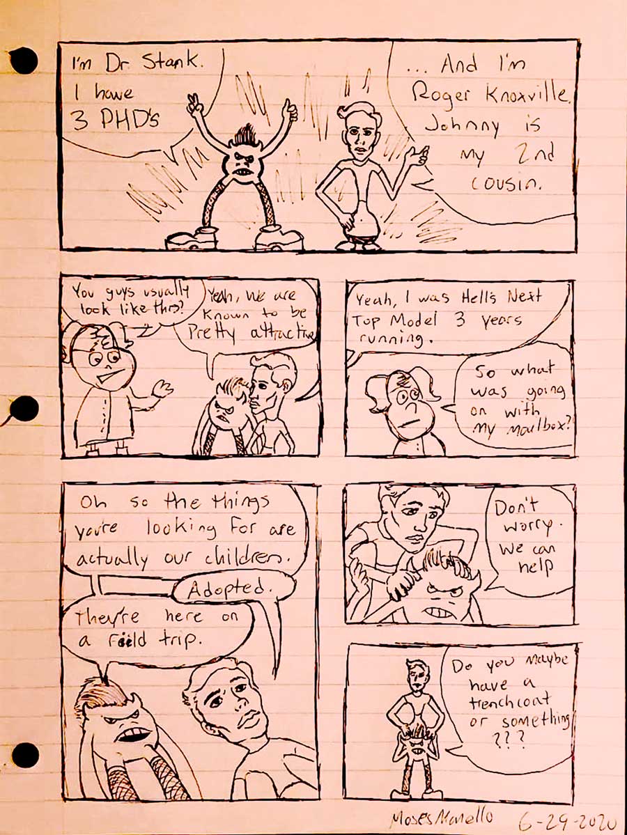 An enormous thank you to our first guest artist, Moses Maiello! Moses always brings the best to these projects (he helped on our last comic!), and we could not have passed up having him on board again.
