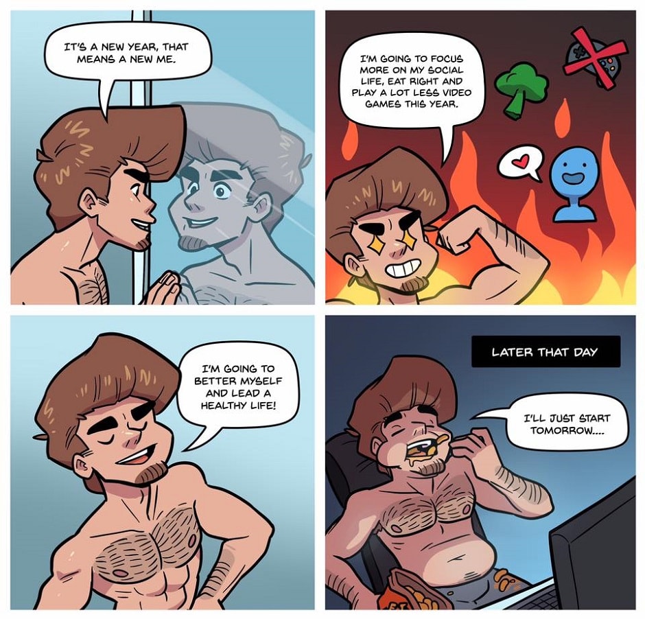 We're soooooo sorry for being so late with posting this strip on here. This was for New Years. But it's still relatable. How many of you are still honoring your resolution?