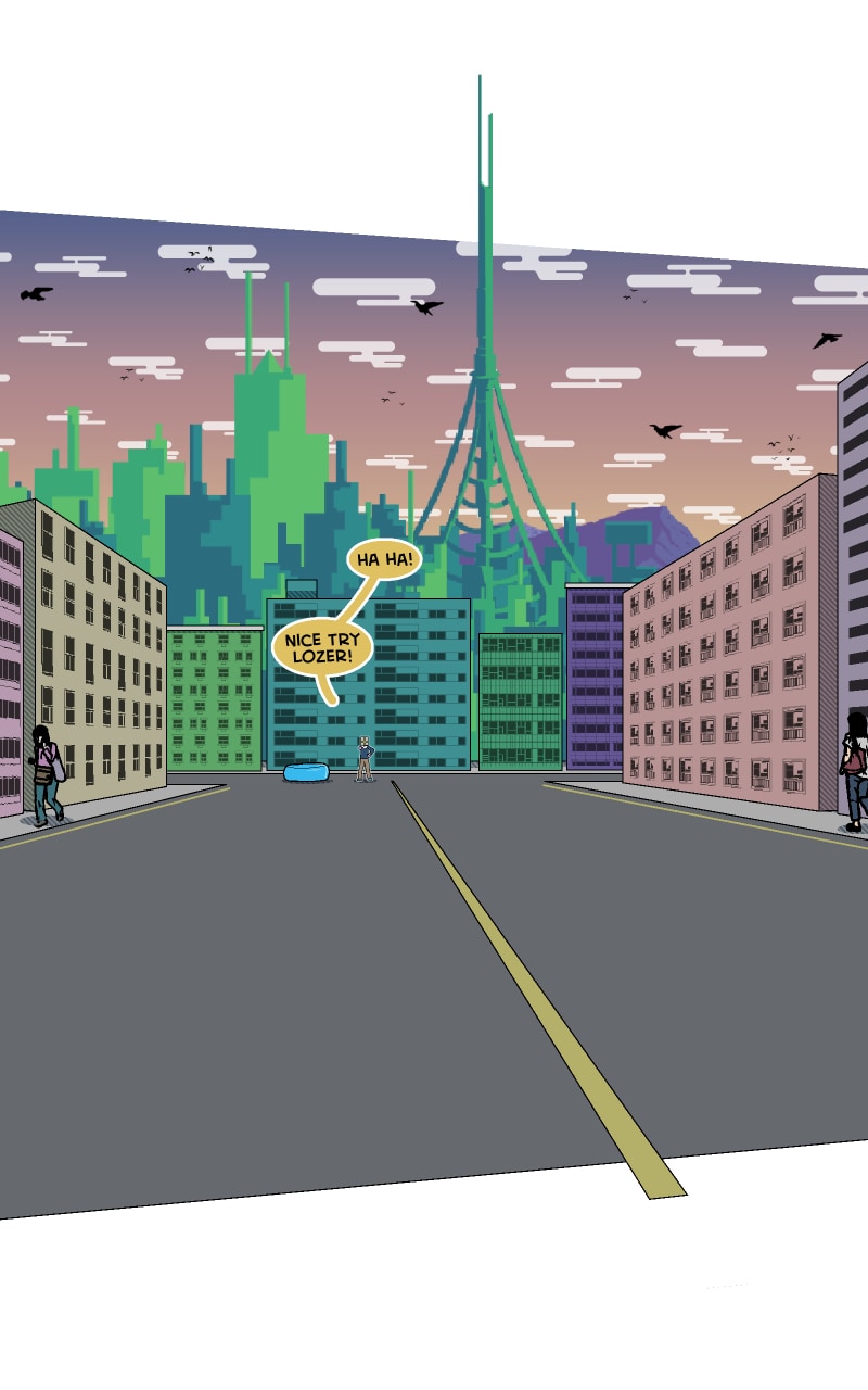 Years ago, a girl named Evelyn "Ev" Kawaguchi moved to Green Lake City. After discovering she has powers that can be used for good, Ev takes up the name “Pigeon” and begins helping citizens and fighting crime. All while balancing her school work, her unpredictable friends, and her 8pm curfew.