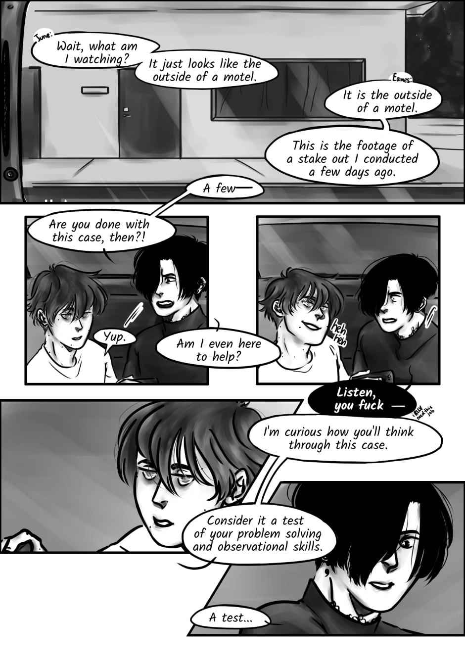 Eames thinks that alien conspiracy theories and being a garbage person are far more entertaining than actual work.