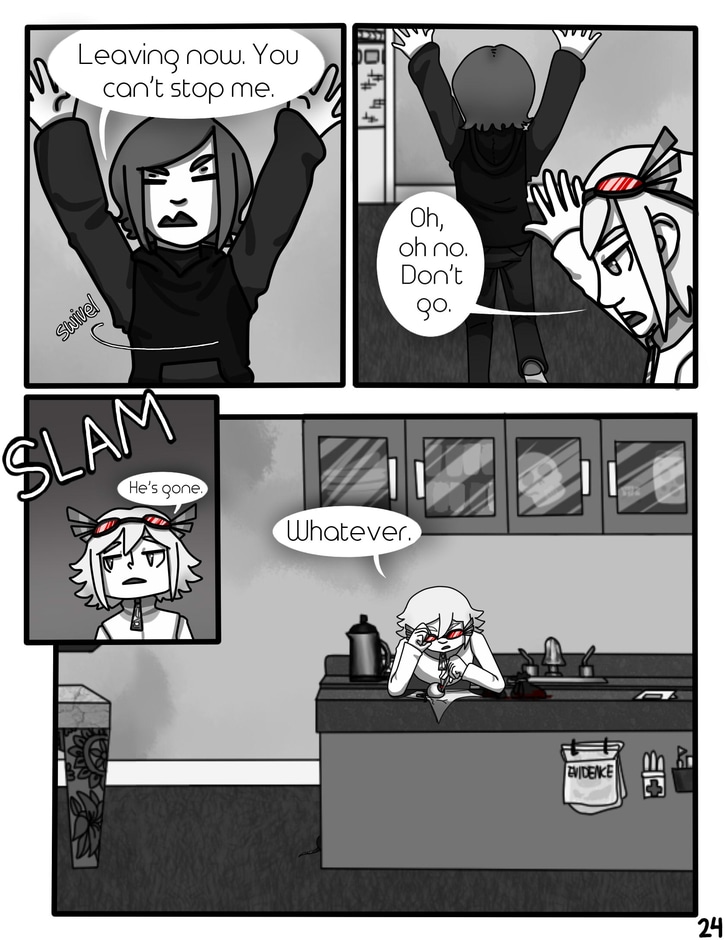 I had to read this a few times to even understand what was happening. I liked the beginning of the comic. It seemed like it was really going somewhere but by page 15 it was a chore to read. The fonts and the color scheme. There's hardly any details in the bubbles. All i know is this kid is 12 and he's some kind of contract killer?? Does the rat talk? There's weird guy in his living room or on video chat. Honestly im not sure who/where he is and why he wants eyeball teeth. This is not something i'd read in the future. Its so chaotic and confusing. However, I did enjoy the colorful panel on page 21 that was so refreshing as well as the art style of it as a whole. (uptownhoney)