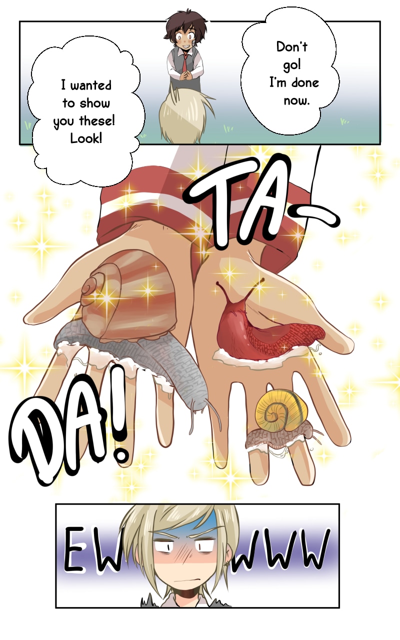 I can’t take it MY HEART IS FOUND FULL OF LOVE FOR THIS PRECIOUS SNAIL LOVING CINNAMON ROLL OF A BOI 😭 ❤️ I’m gonna break this 4th wall and be your bestfriend forever Nori! 🥺💕