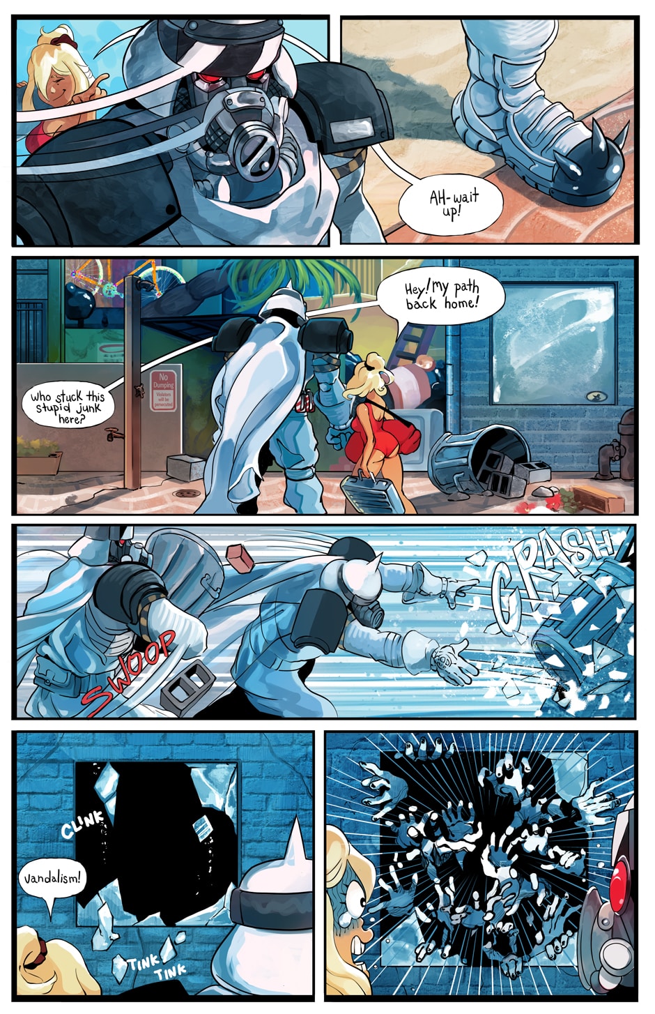 At long last, our two protagonists hone in on one another. But how will this armored killing machine and this ditzy lifeguard fair in the world of Splatterbrain.