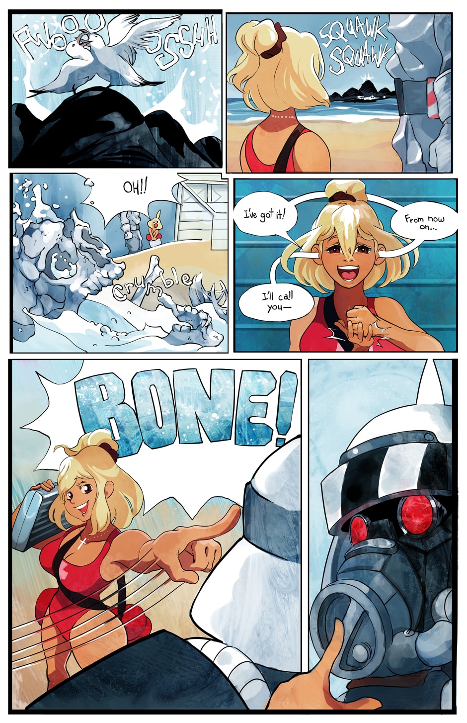 A ditzy lifeguard and an armored killing machine take on swarms of undead in this colorful twist on a zombie beachpocalypse. Can Bone the super soldier escort his doe-eyed, haphazard partner to safety in one piece, or will opposing forces, both living and dead, try to take everything from them?