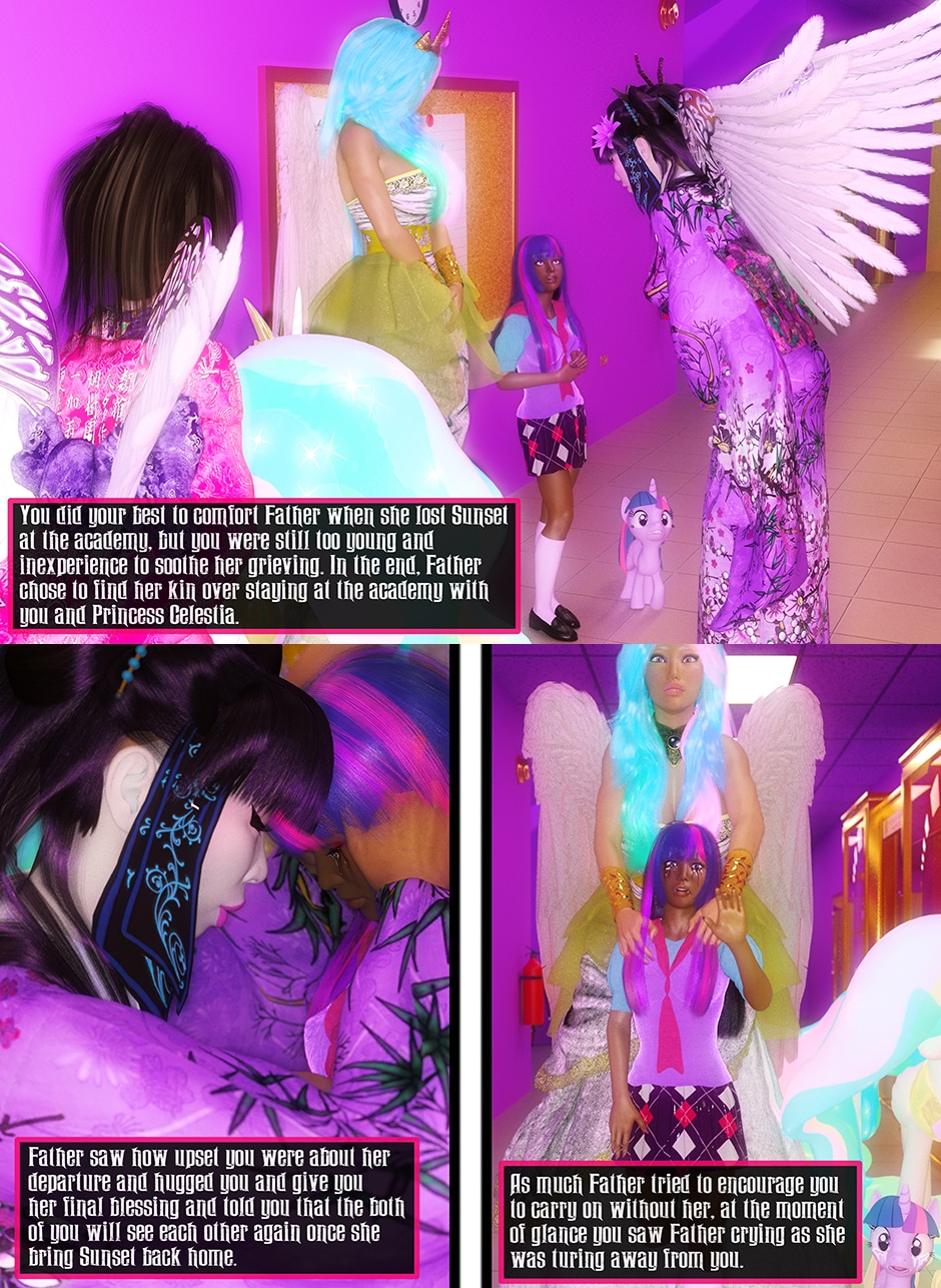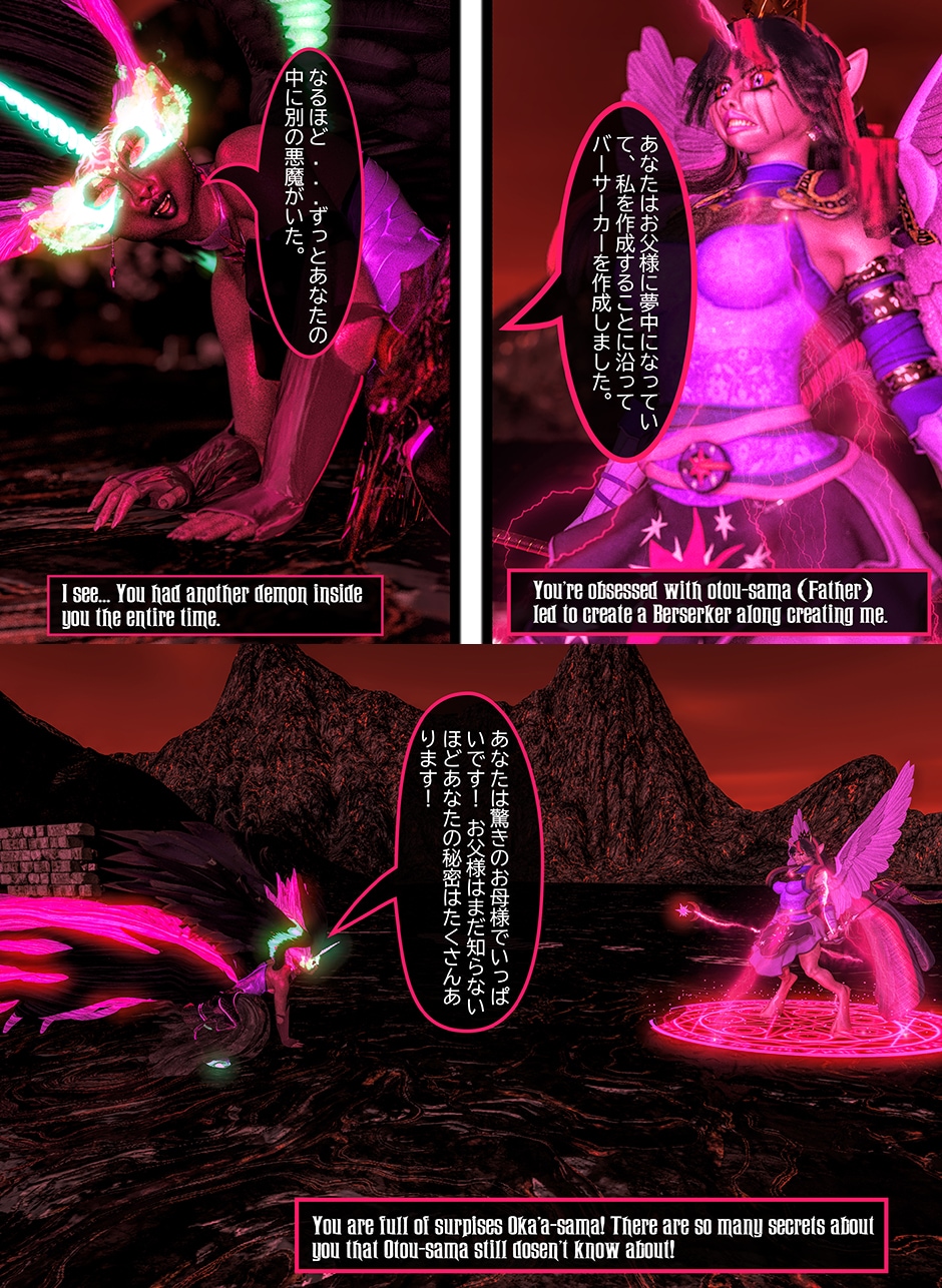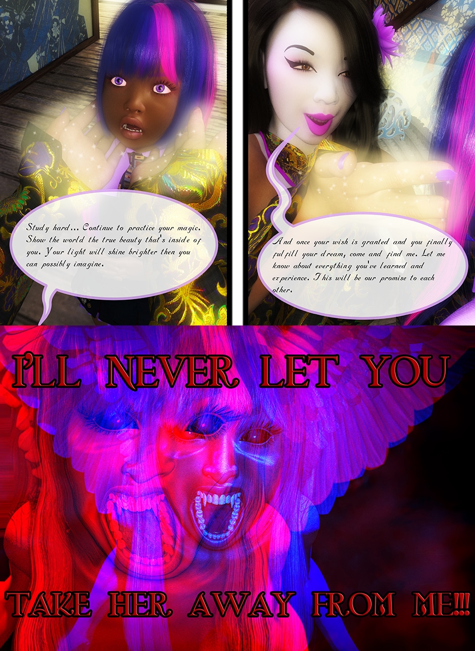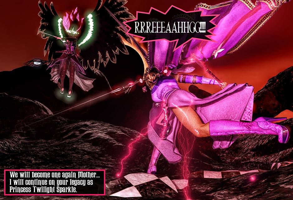 After seeing Lady Maya's body being mutilated by Midnight, Princess Twilight confronted her Succubus Doppelganger asking her why she did what she done to Maya. Midnight told Twilight that she reacted in her nature as a Succubus which is based on Twilight's deepest desires for Maya that she held for her entire life. Midnight plan to take over Twilight's body and take over Equestrian with Nightmare Moon and her fellow Succubi Sisters, and to torment Maya for all eternity. Twilight realized that she can't use her magic and fell into deep despair, but something else inside of her begin to awaken. This entity maybe even more dangerous than the Succubus That was created from Twilight's desires.