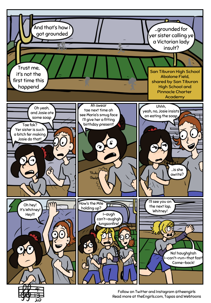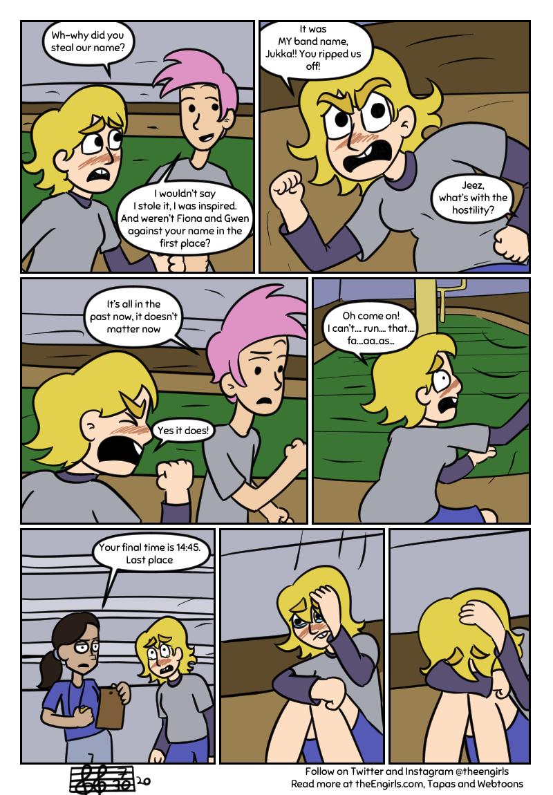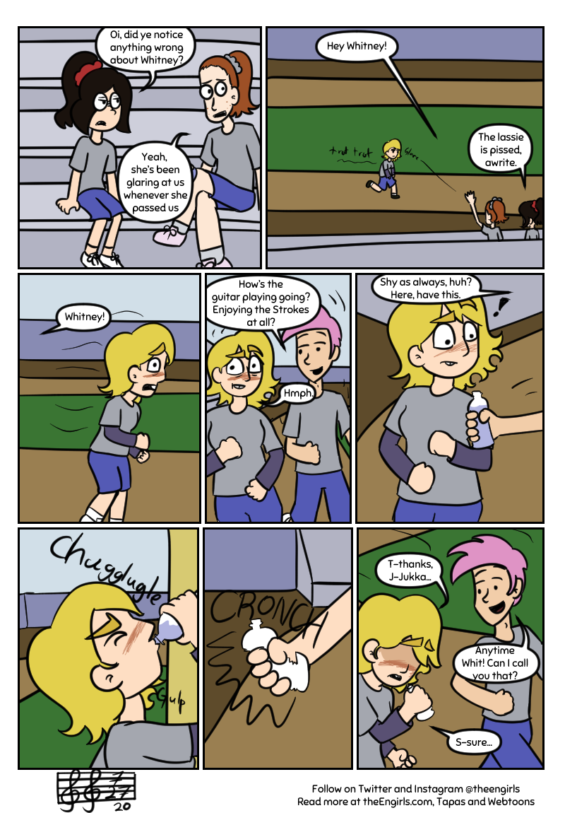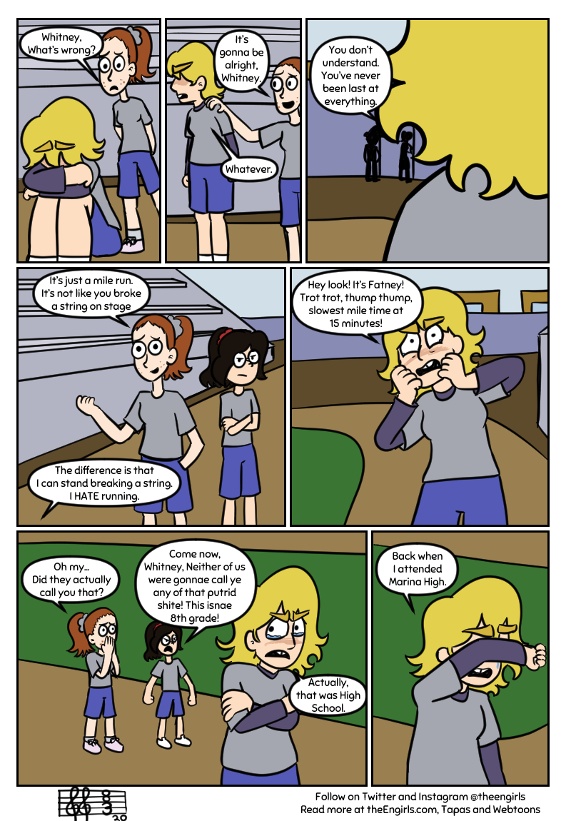 A story about three girls - Whitney, Gwen, and Fiona - and their adventures as the high school pop-punk band The Engirls (good luck trying to pronounce that). Now rebranded as The Middle, read on as the girls go to shows, write music together, and hang out while dealing with annoying rivals, depression, and crippling stage-fright!
