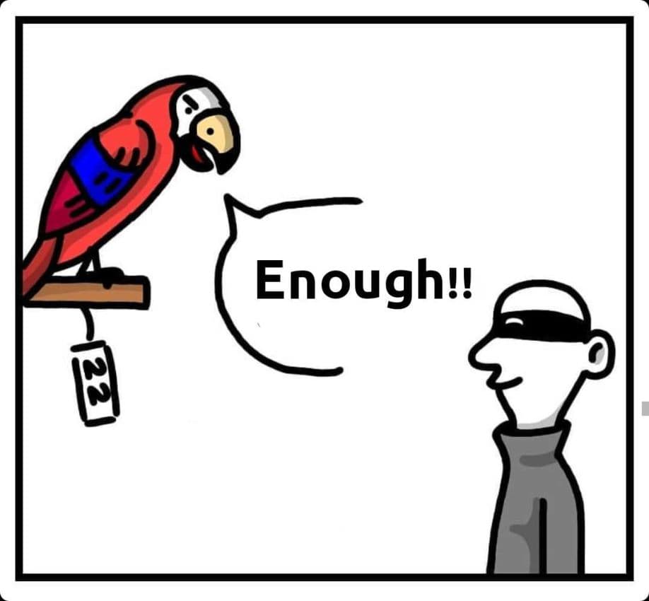 Looks like the parrot had enough.