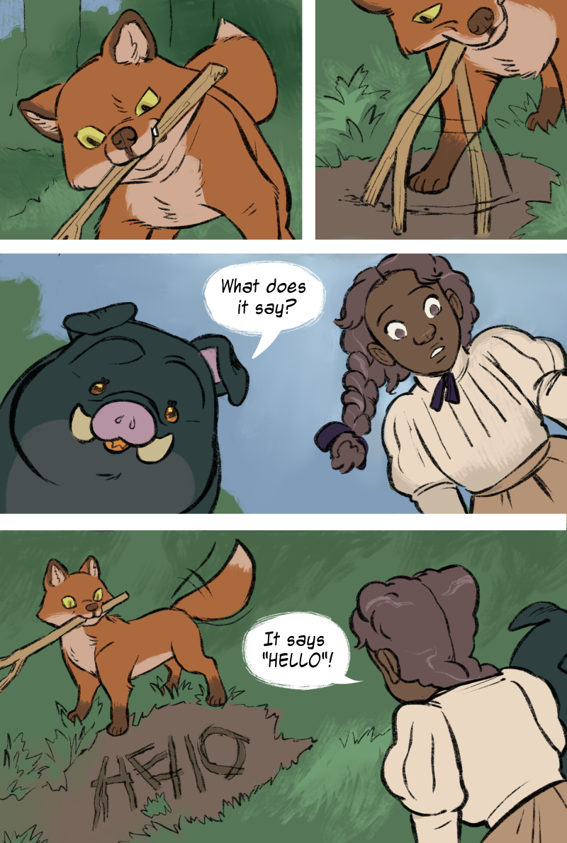 The fox can write!? I wonder if it can read too? How did it learn the alphabet and vocabulary? Is there an explanation? Or can this just be simply explained by it’s a “magic fox”?