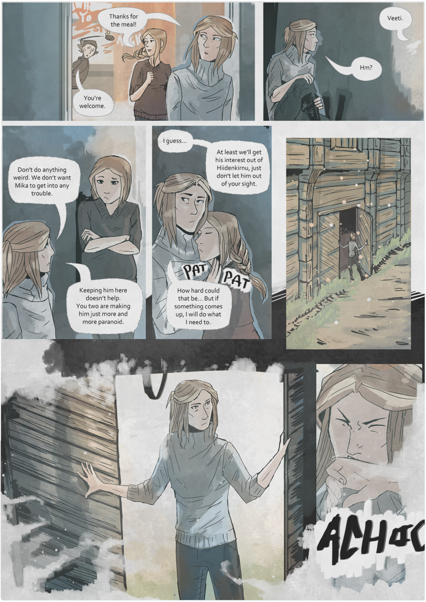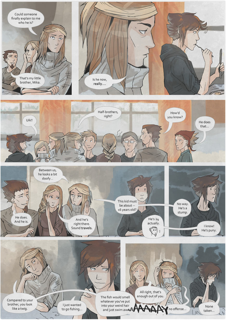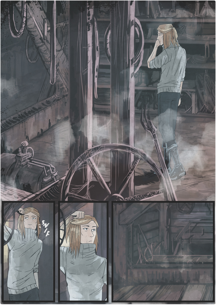 The last page is actually a first half of another spreadpage! I'll post a link where you can see the whole schebang in the next episode.
