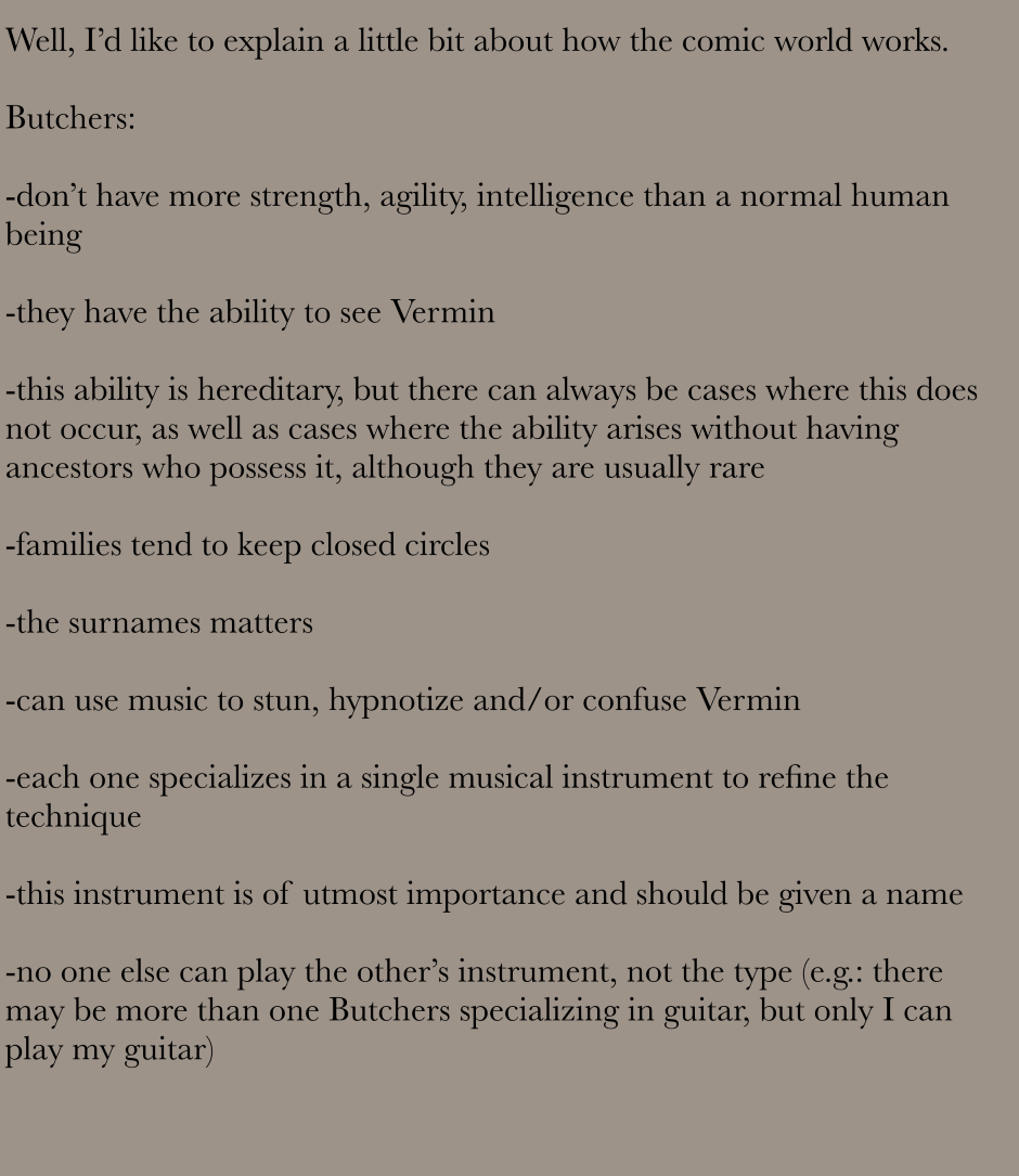 In a world where creatures hide among humans, the Butchers, people with the ability to see magical beings, must investigate multiple and mysterious incidents ... but this research become influenced by the participation of an enigmatic character
