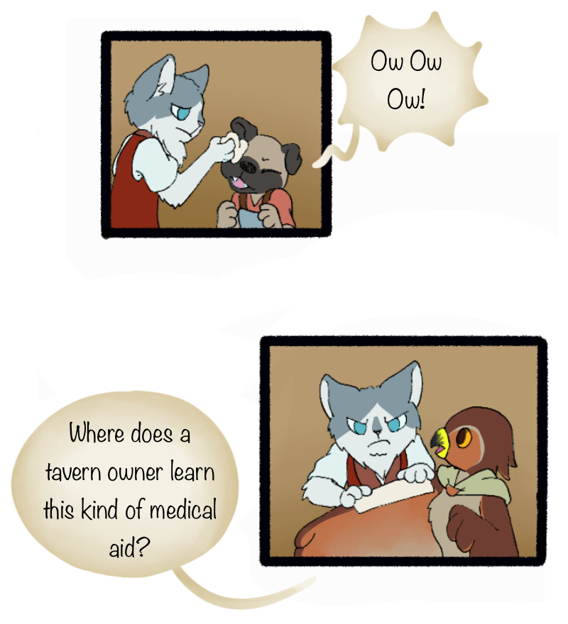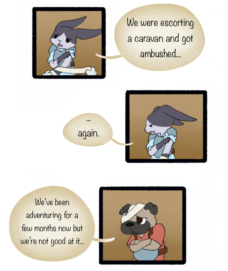 Some young and inexperienced adventurers stumble into the tavern.