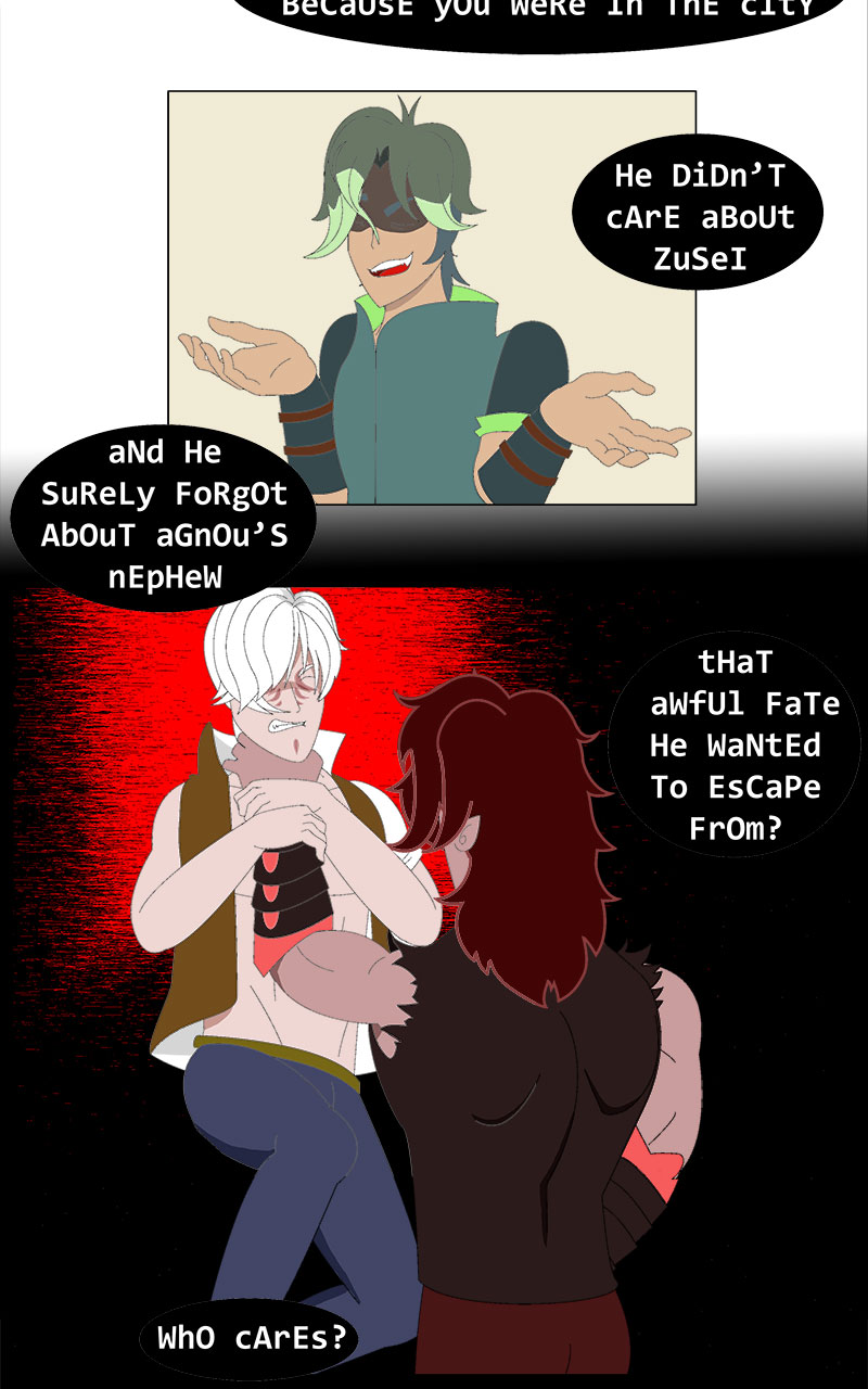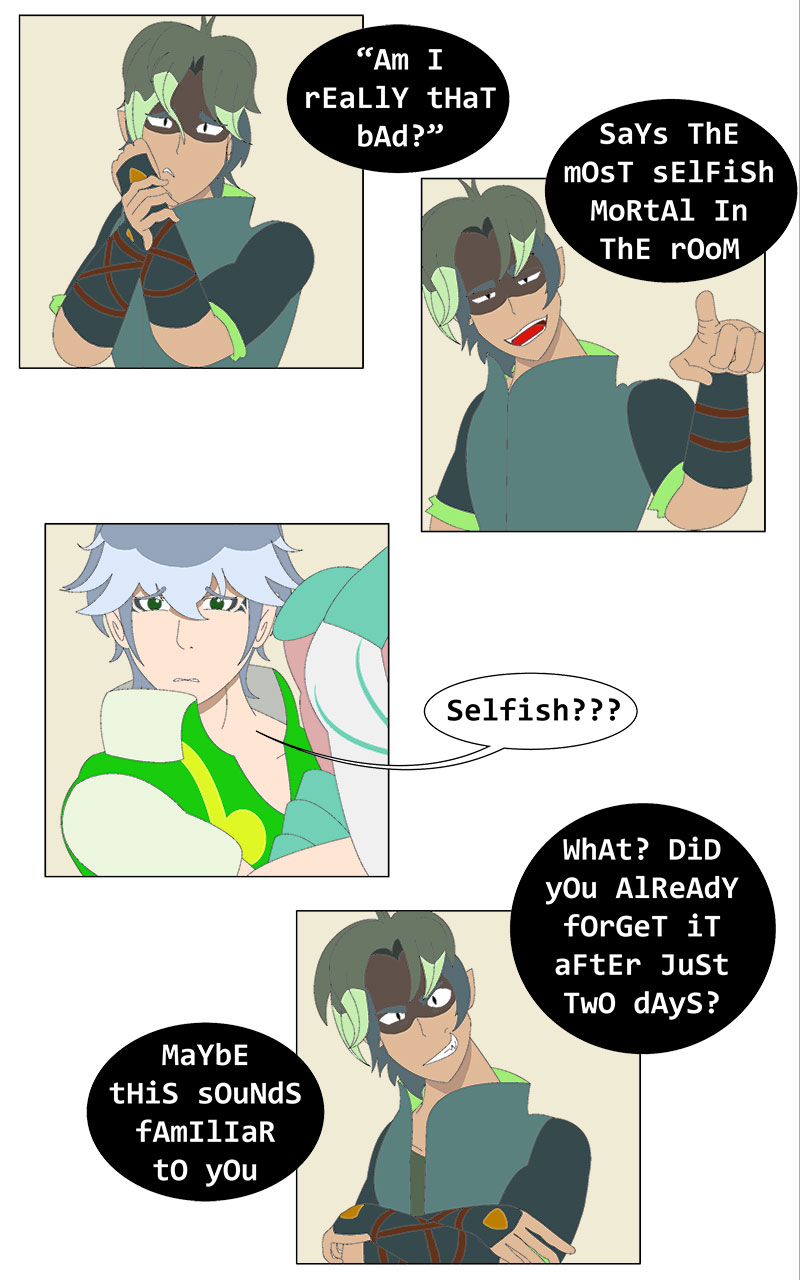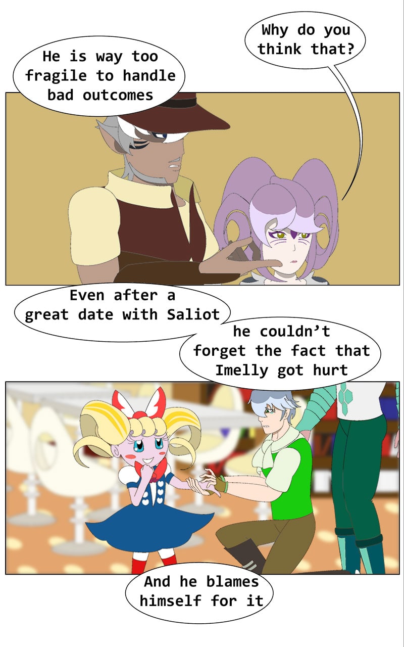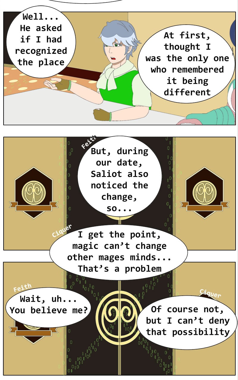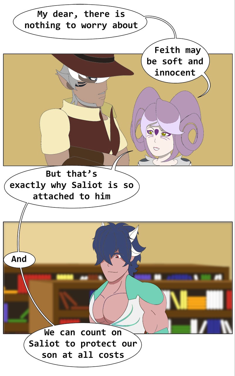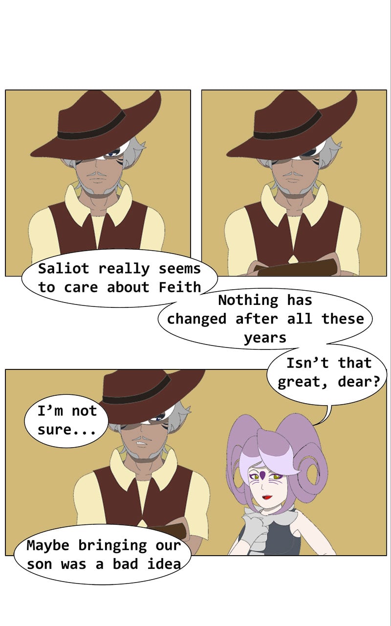 If you feel like this is the worst chapter so far, well, I agree. It's not a pleasant one. I also want to read the previous one and feel good again, enjoy that wholesome moment between Feith and Saliot, or move forward to find the next moment that makes me feel good again.
