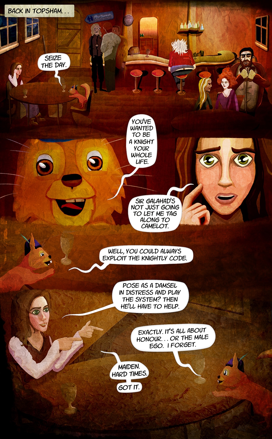Sick of waitressing and determined to achieve her dream of joining the Knights of the Round Table, Anna of Topsham sets off for King Arthur's court with her trusty companion, Sir Percival the Squirrel.