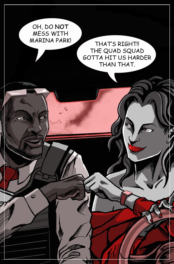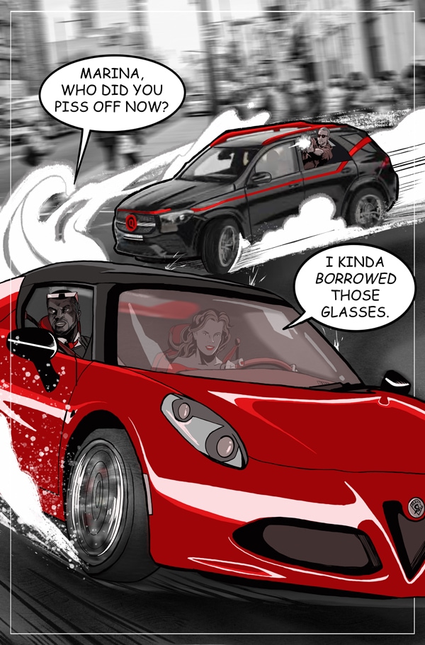 Marina Park is a spy thriller about a woman who has to stop the smart drug firm The Quad from taking over the streets of NYC. This adventure comic follows her tracking down the Quad and the mysterious Mr. Z. Marina has many obstacles to overcome. Each episode's sexy storyline mixed with action adventure will keep you motivated to binge read.