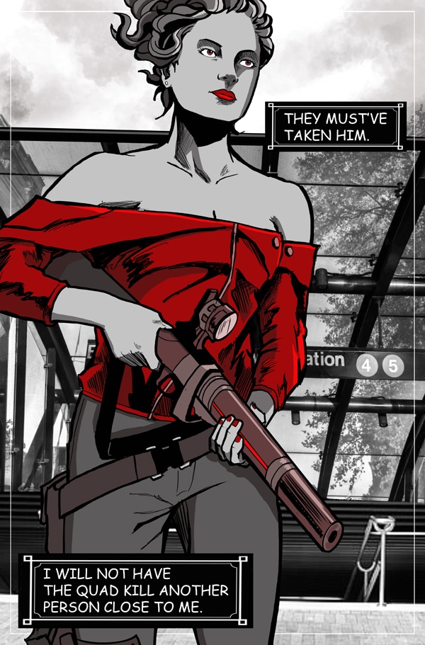 Marina Park is a spy thriller about a woman who has to stop the smart drug firm The Quad from taking over the streets of NYC. This adventure comic follows her tracking down the Quad and the mysterious Mr. Z. Marina has many obstacles to overcome. Each episode's sexy storyline mixed with action adventure will keep you motivated to binge read.