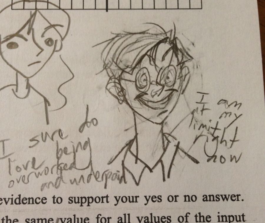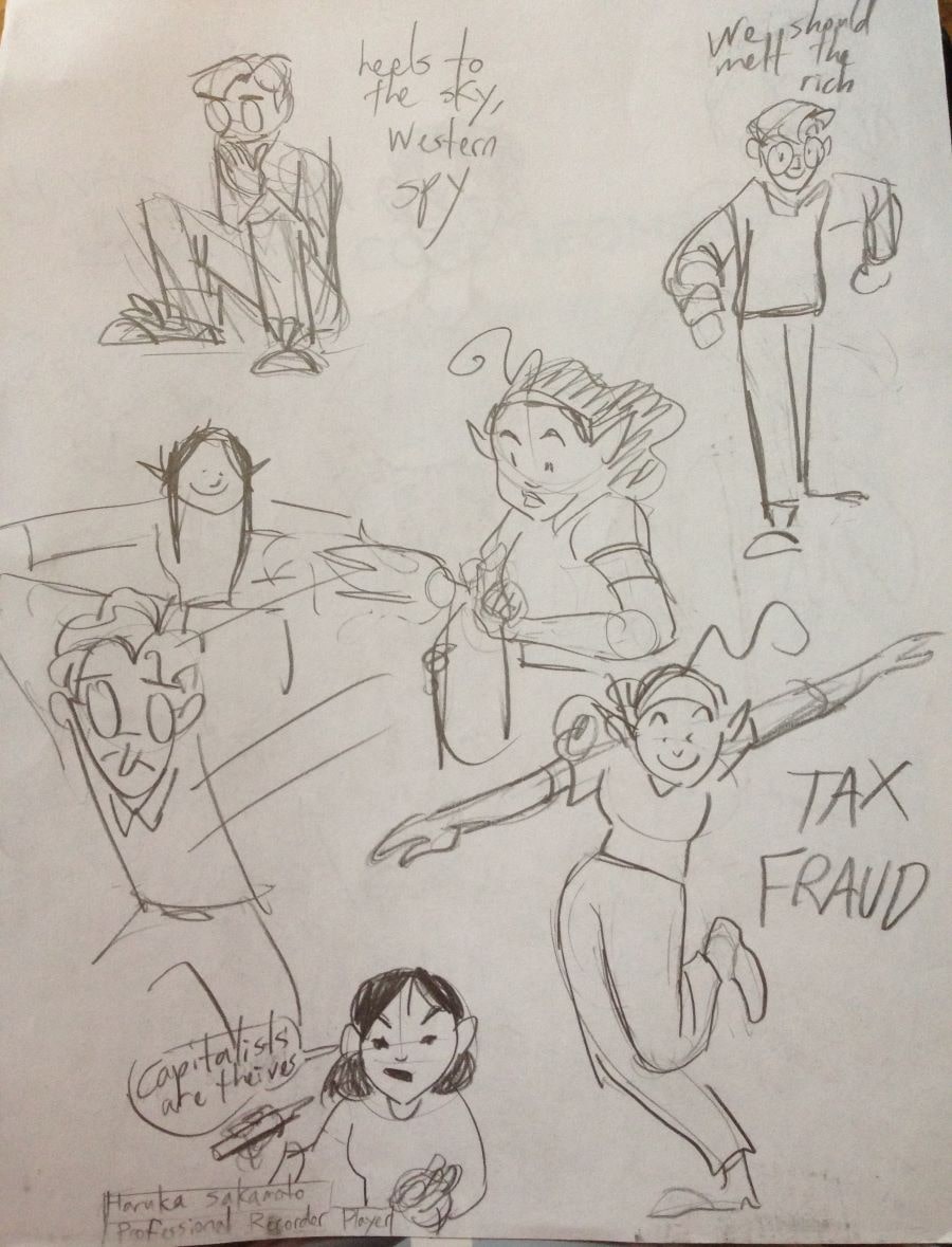 Found some old doodles of my characters on 10th grade schoolwork. Drawings from September 2019-March 2020.