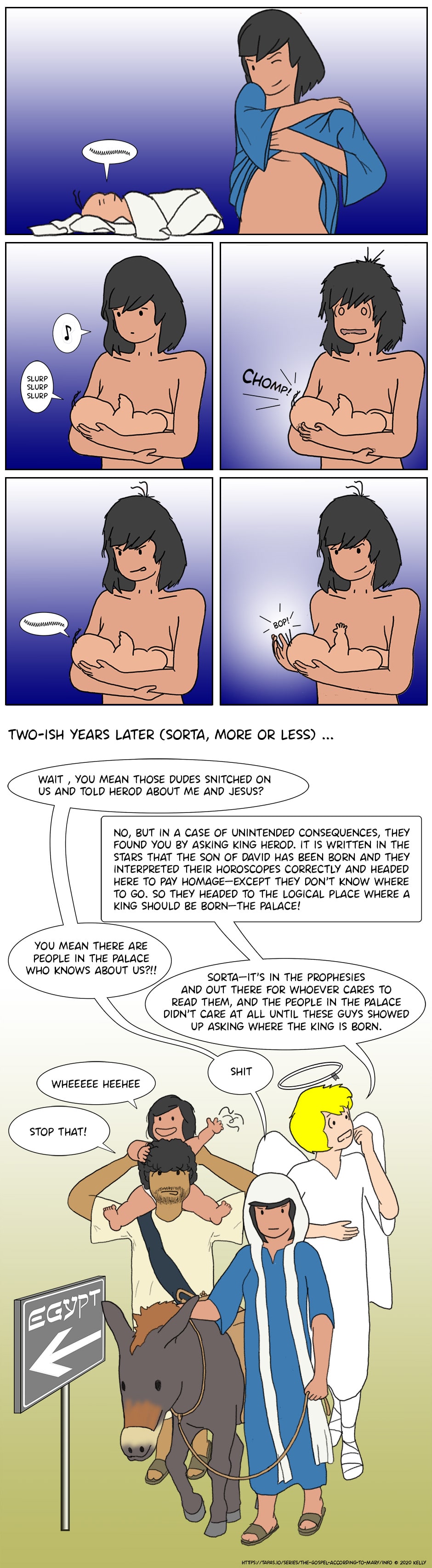 A semi-canon/fan fiction bio of Mary (yeah, that Mary), who at the age of fifteen took on the cosmic responsibility of bringing up the messiah while doing things under the radar of the Roman Empire and their local overlords. Not to be confused with fan fiction of the same title written back maybe in the 2nd Century.