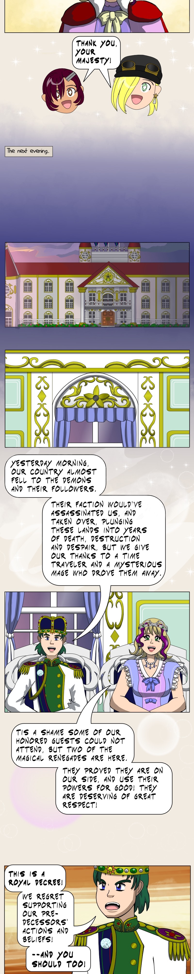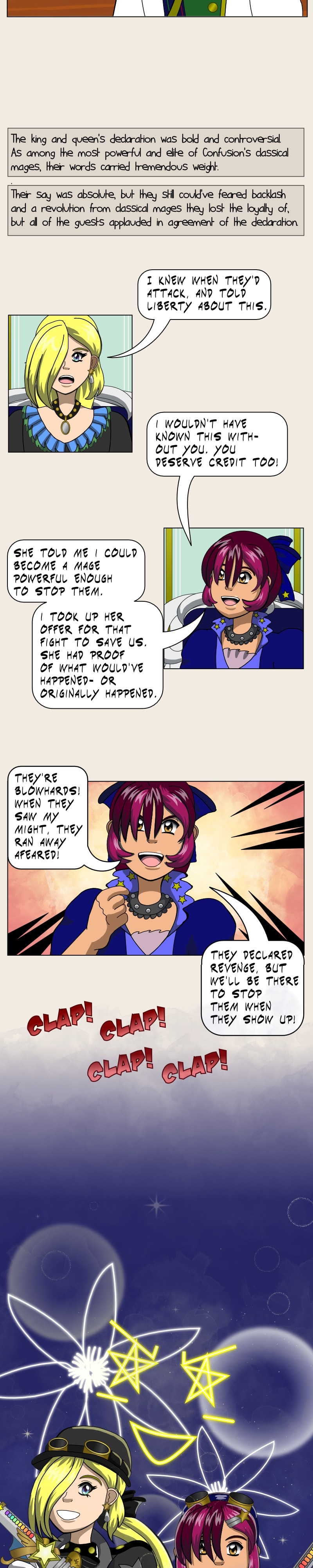 The Magical Renegades had been mistrusted and shunned by the classical mage elite, and many of the other classical mages, but were accepted at last after stopping a threat that would've laid ruin to the country! The king and queen regretted ever supporting the crackdowns against the Magical Renegades.