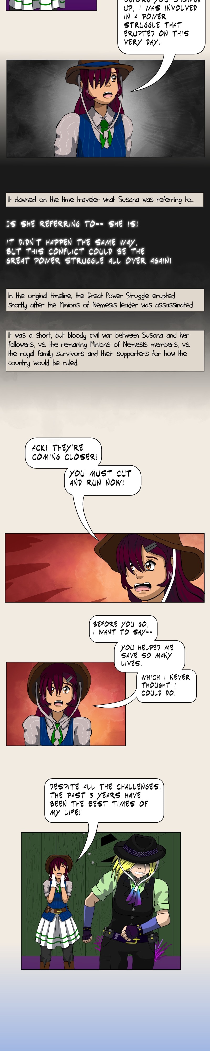 The rival caused an incident that left a group of people stranded in 1887, under her rule, in a bizarre anachronistic timeline just as "The Great Power Struggle" is about to happen again! Some of the stranded people are just trying to survive while they wait for space-time to be restored, but others have their eyes on joining one of these factions and see opportunities for heroism, fame, wealth or power ahead!