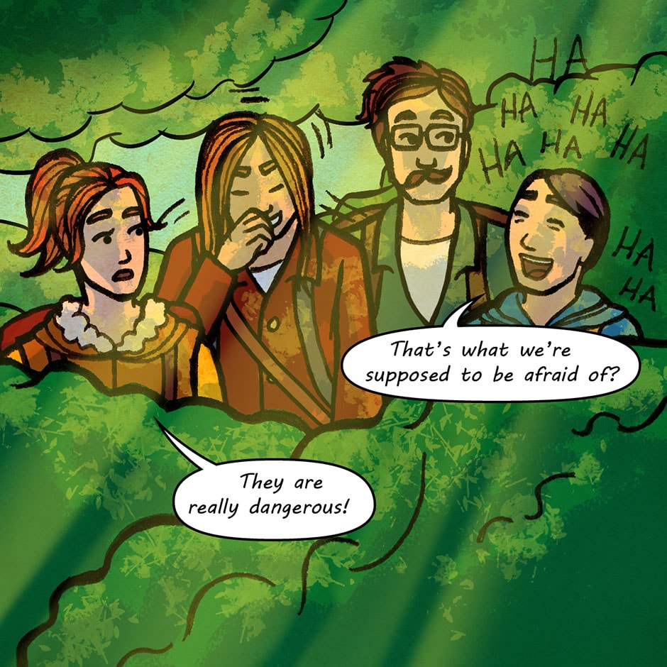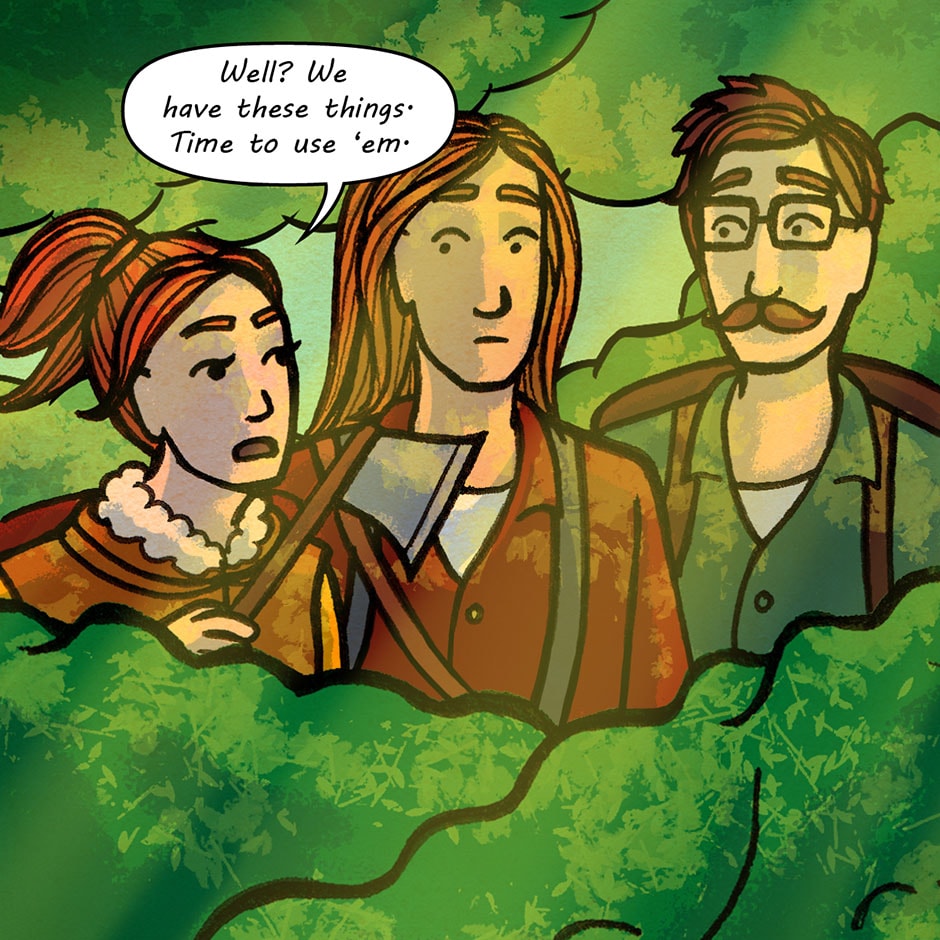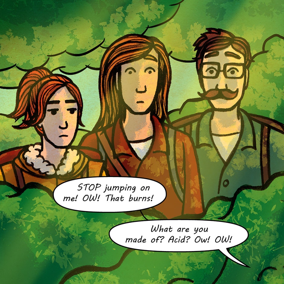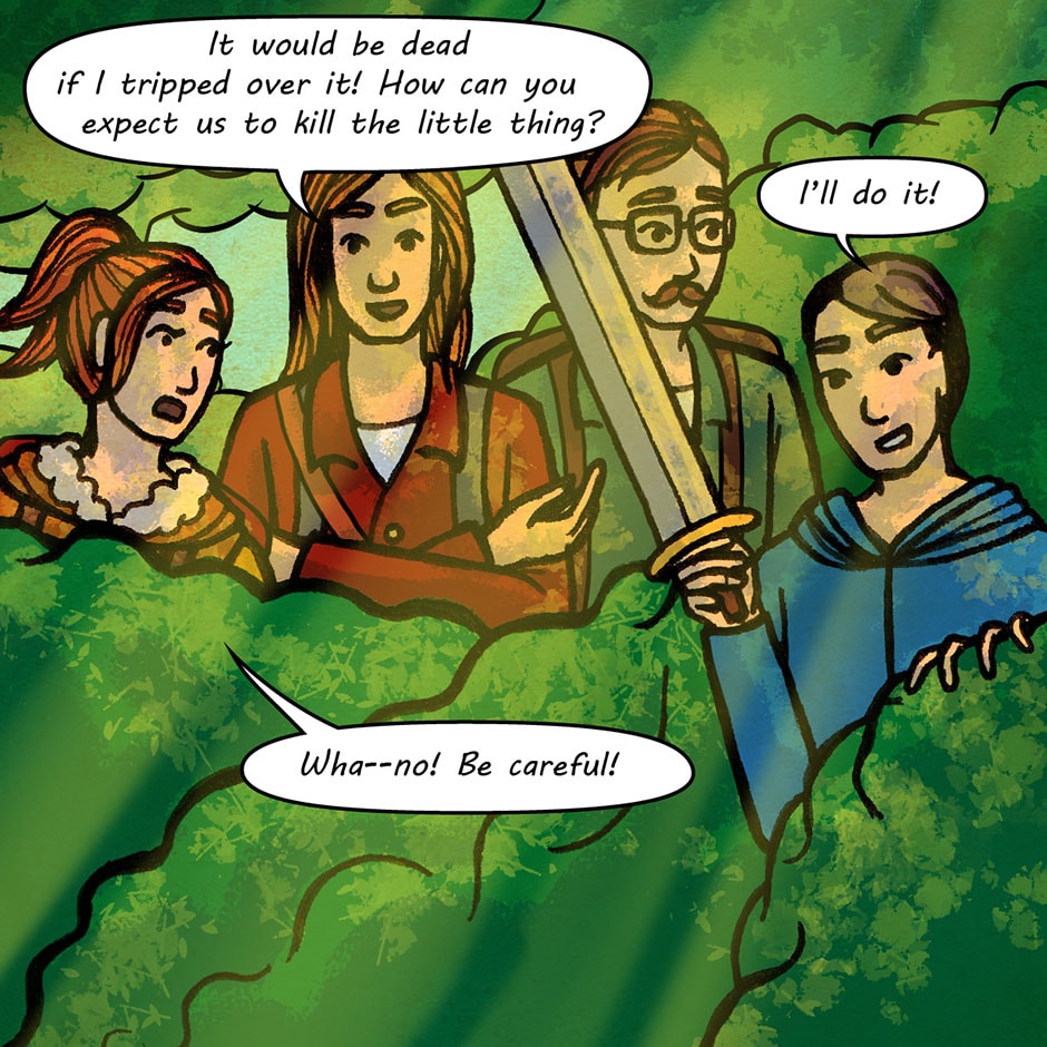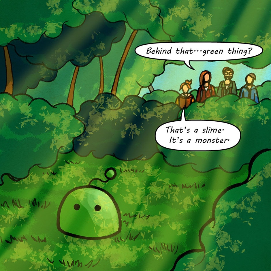 The team has finally met their first foe...a little green slime. It is totally harmless, and the worst thing it possibly can do is nibble your bum, right?