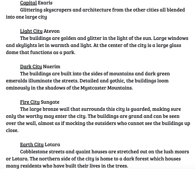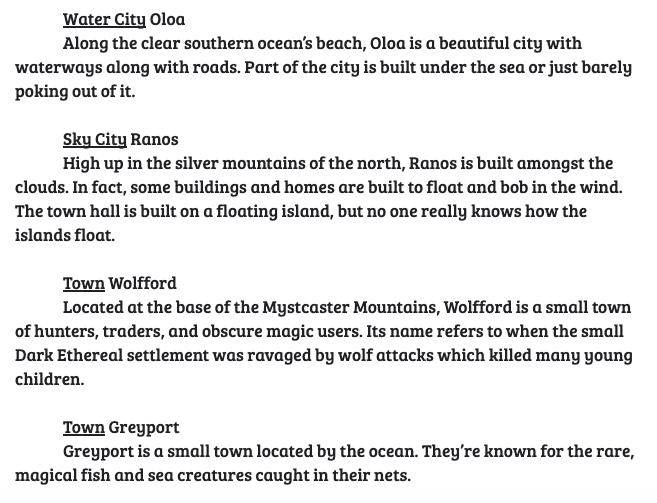 Map and descriptions of each location!