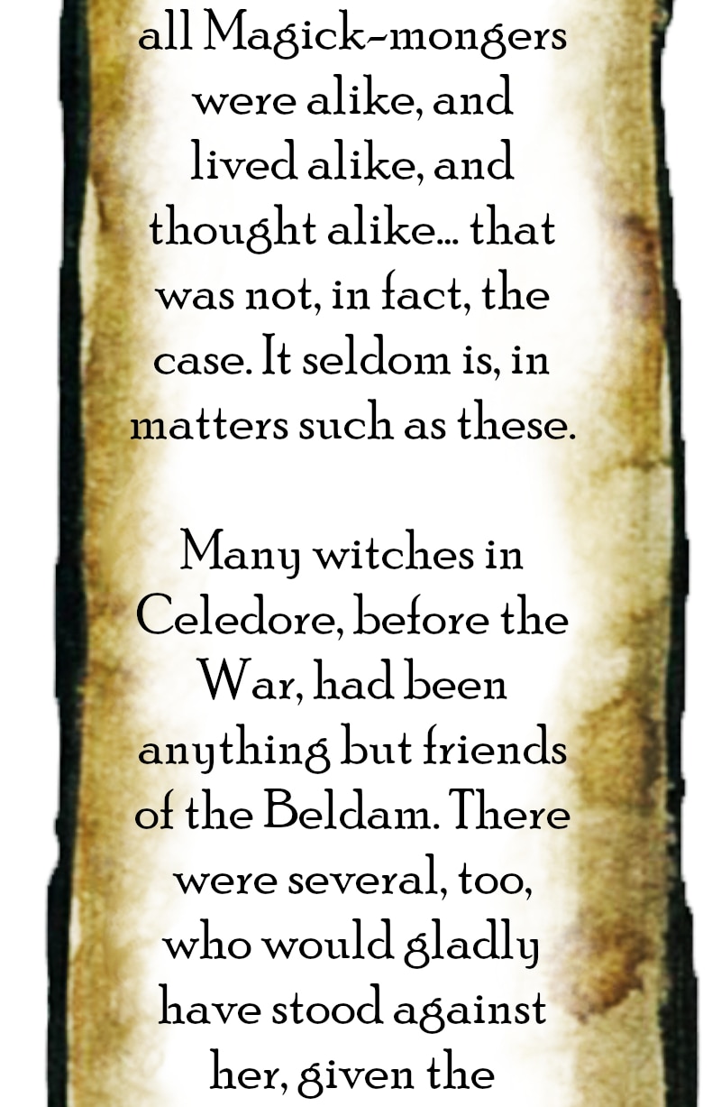 —But that doesn't stop the people of Celadore from condemning the newborn girl Nedra to death by her father's hand. Nor does it stop Prince Arden's parents, terrified by portents of their son’s love for a witch, from doing everything in their power to ensure he learns nothing of Magick. When these two children eventually cross paths, their bond leads to a shocking future that Celadore didn't know it desperately needed.