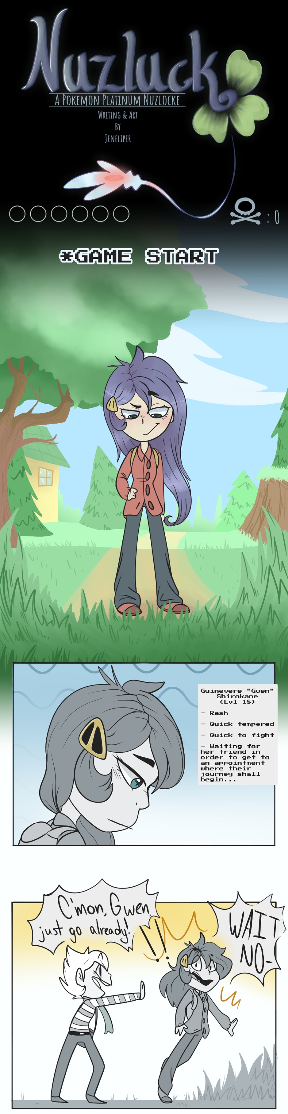 Follow Guinevere "Gwen" Shirokane on her journey through Sinnoh, with her two friends and her growing team of Pokemon. Of course, nothing can ever be simple, as she receives a gift from the local lake spirit Pokemon, which comes with the price of raising the stakes in battle...