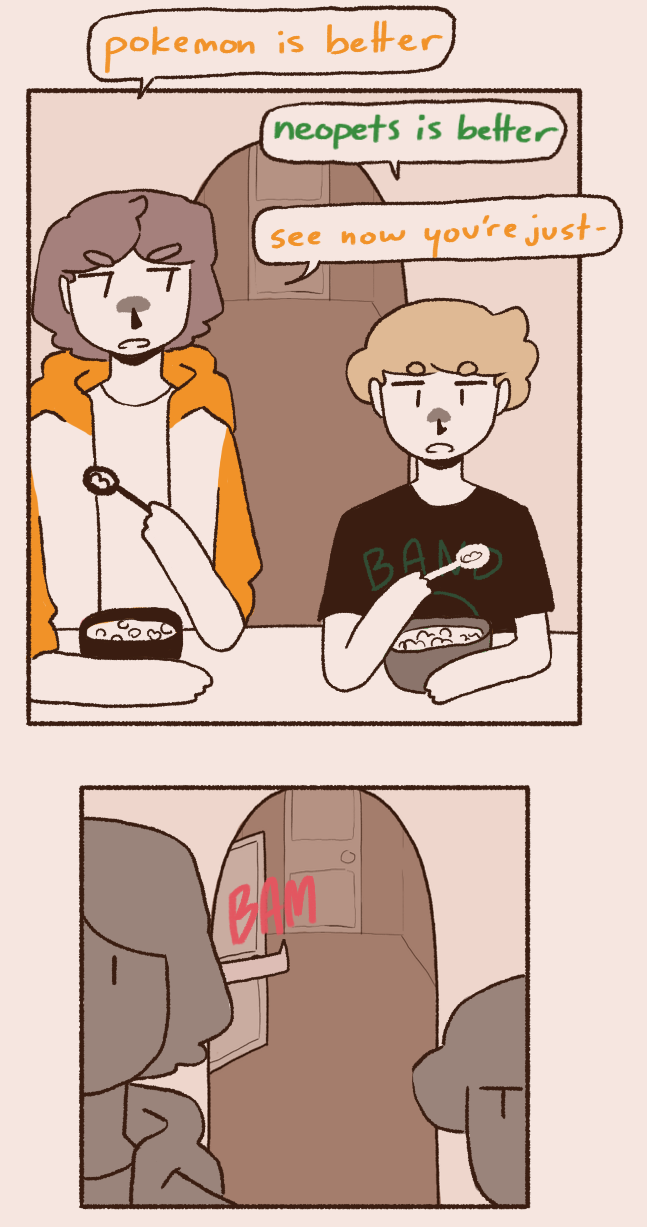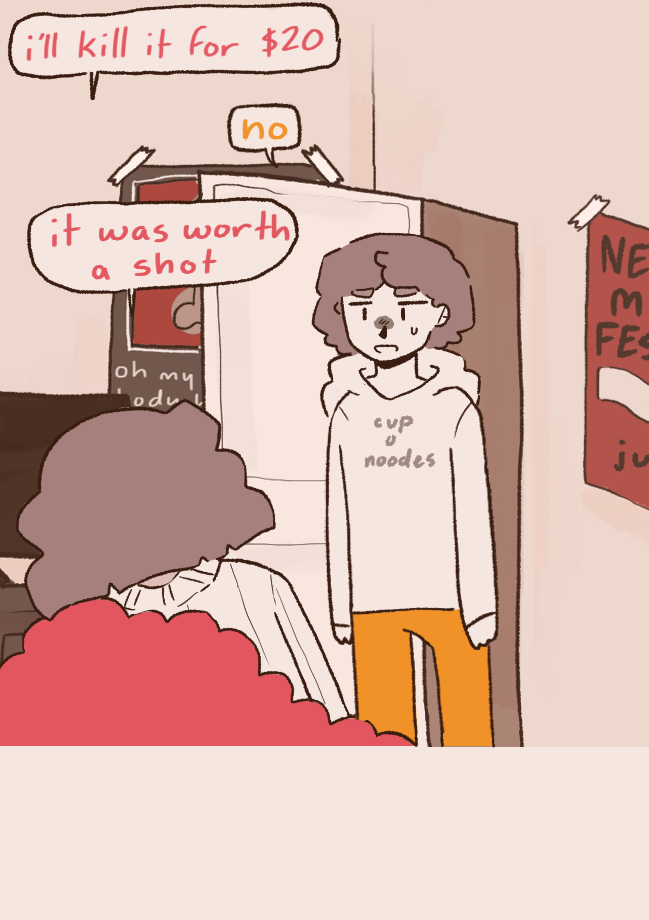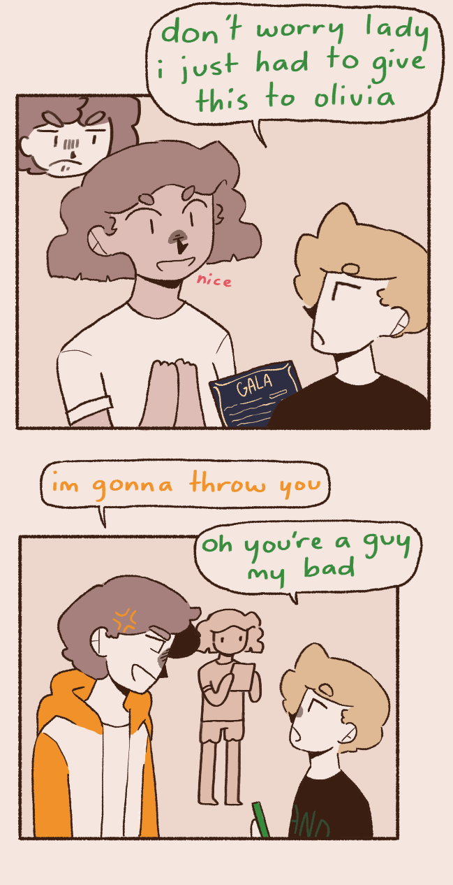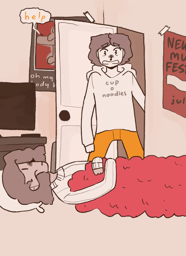 Ramen and Olivia are roommates in New City (i didn't forget york that's just what its called </3). They're two dumb motherfuckers but somehow Ramen gets good grades in university and Olivia always pays the rent on time. They basically only have each other, until two MORE dumb motherfuckers come along. Percy, a dumb little baby with no life experience, and Charles, Olivia's childhood friend and wannabe emo kid that has way too much time on his hands. they do funny stuff please read my comic