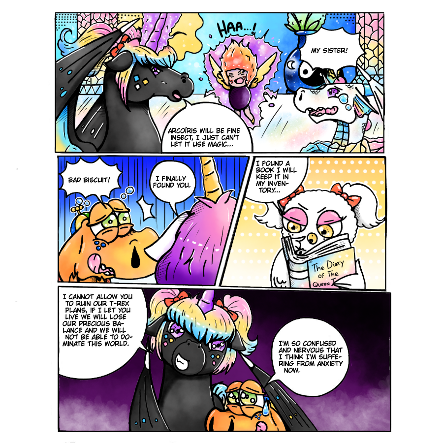 thanks for reading my comic here the second chapter ends, I hope you liked it, little by little I will explain how the world of desires and dreams works, I will only explain that the dragons of this world when using their magic to the limit is normal what blood a little sometimes collapse, t-rex will always get in trouble for his bad luck...