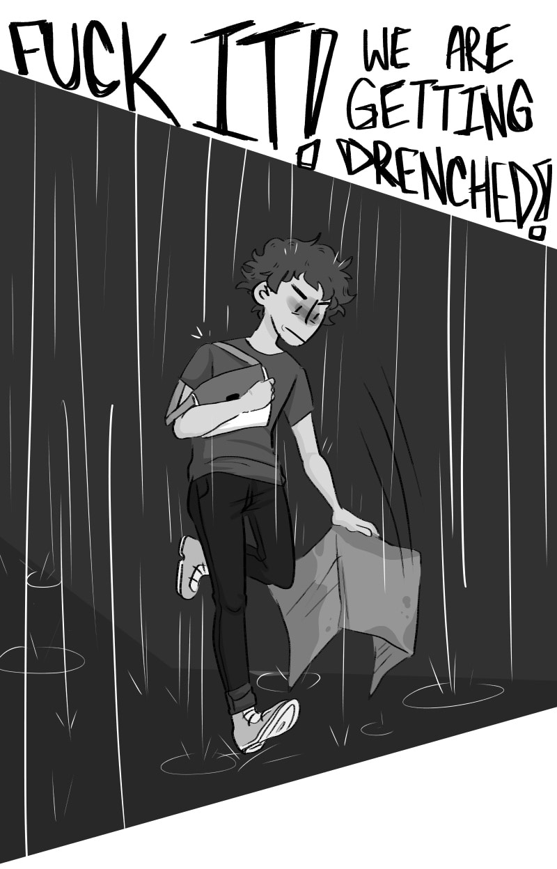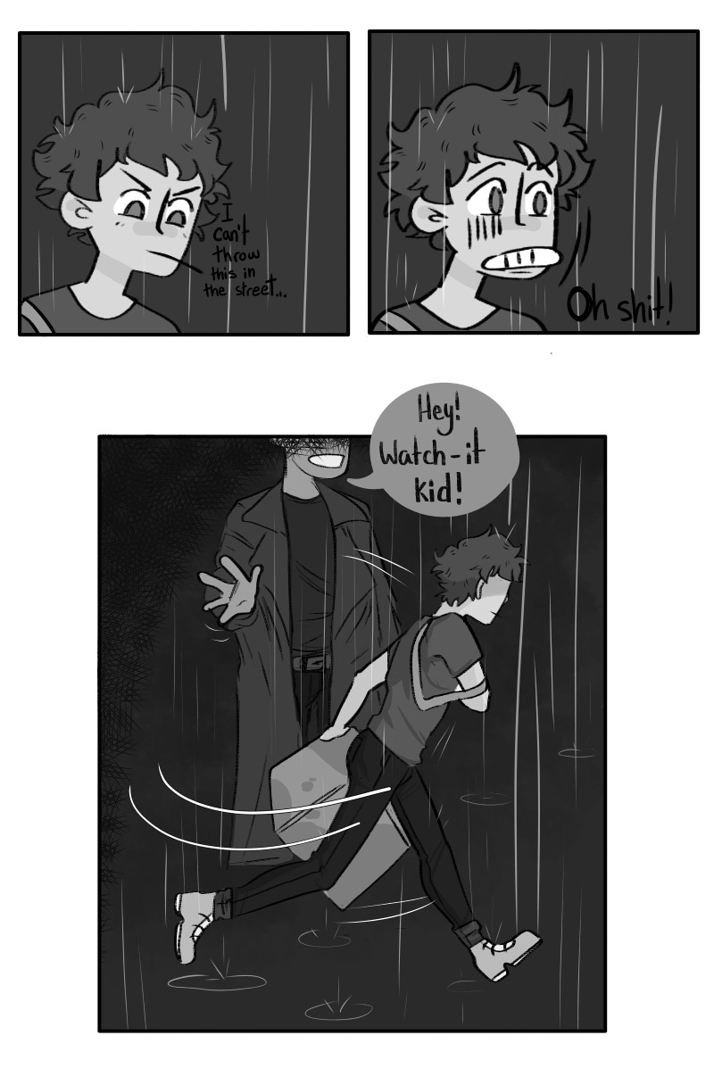 The boy curses!! Also drawing people running is hardddd