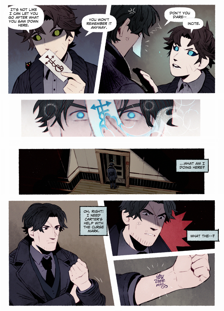 HAYDEN’S NOTES is a magic realism mystery with horror elements, set in the fictional country in the first half of the 20th century. The comic’s told in the non-chronological order revolving around Hayden Carter, immortal (by accident) gray mage, pursuer of knowledge and a witty nuisance for everyone around.