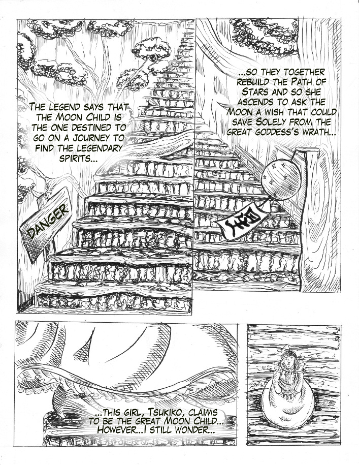 Tells the story of Tsukiko, a star that once fell from the sky as a shooting star (and landed in a country named Solely) and her journey to return home. However, that return may be full of challenges, being one of those to find the "Five legendary spirits" to rebuild the path to Heaven; also, she'll have to deal with a war between two powerful and rich families and, most importantly, face her own past.