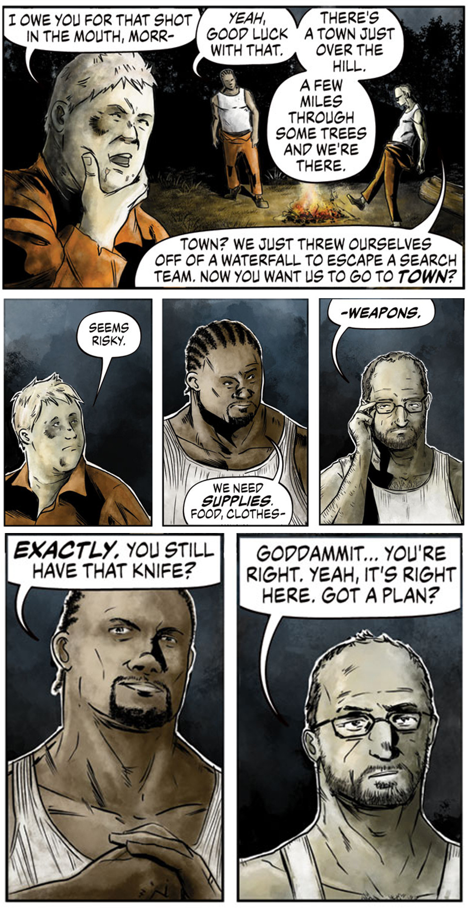 Together our courageous convicts are deciding upon a game plan. They need food, supplies, and weapons. They're heading to Where The Light Is in hopes of getting their hands on the bare necessities. They'll need all the luck they can get.