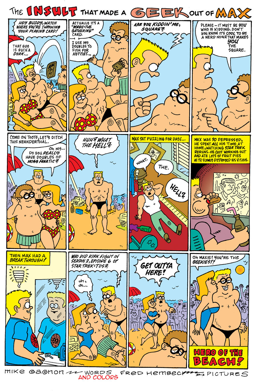 Remember those Charles Atlas ads that used to be on the back on comics? Here's how it would go today. With Fred Hembeck.