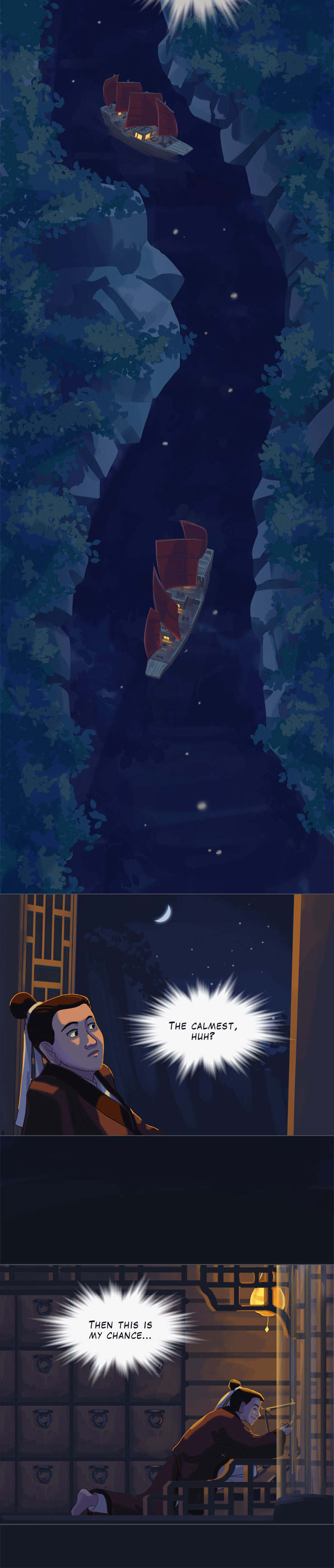Seventeen years old Rui Kiosai is an astronomy nerd and an aspiring scholar on his way to the Capital for the National Exam. Little he knows, his lunar eclipse prediction attracts a mysterious man-in-black.