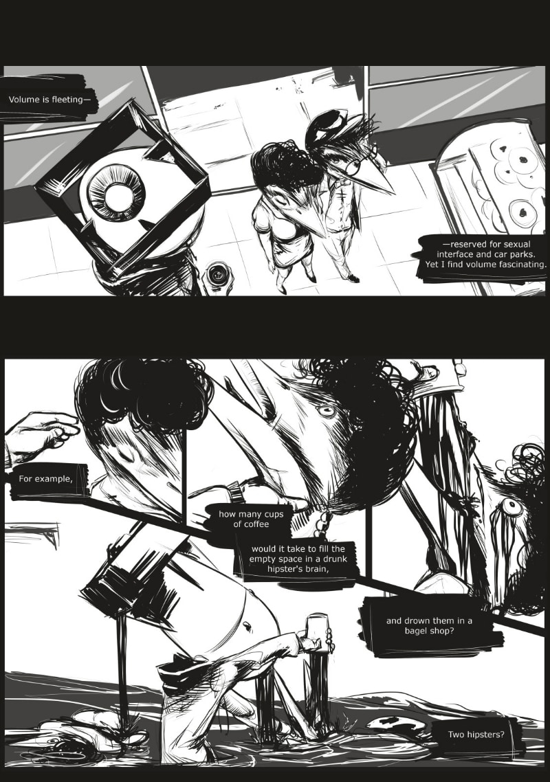Adam slides in and out of increasingly surreal landscapes, as he struggles for success in his career, and stability in his mental health.