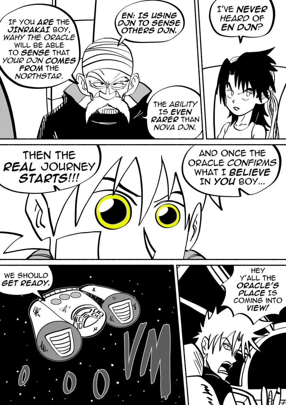 Welcome to the new space opera that is JinRakai: Savior of the Universe! Read along as Bit's peaceful life on Earth must come to an end because unbeknownst to him, Bit is actually the Legendary JinRakai!! Born with the powers of the Northstar, Bit must race across the Cosmos to the Northstar, and defeat King Yenu, the evil ruler of the Celestial Kingdom! Can Bit live up to the title of Savior of the Universe?
