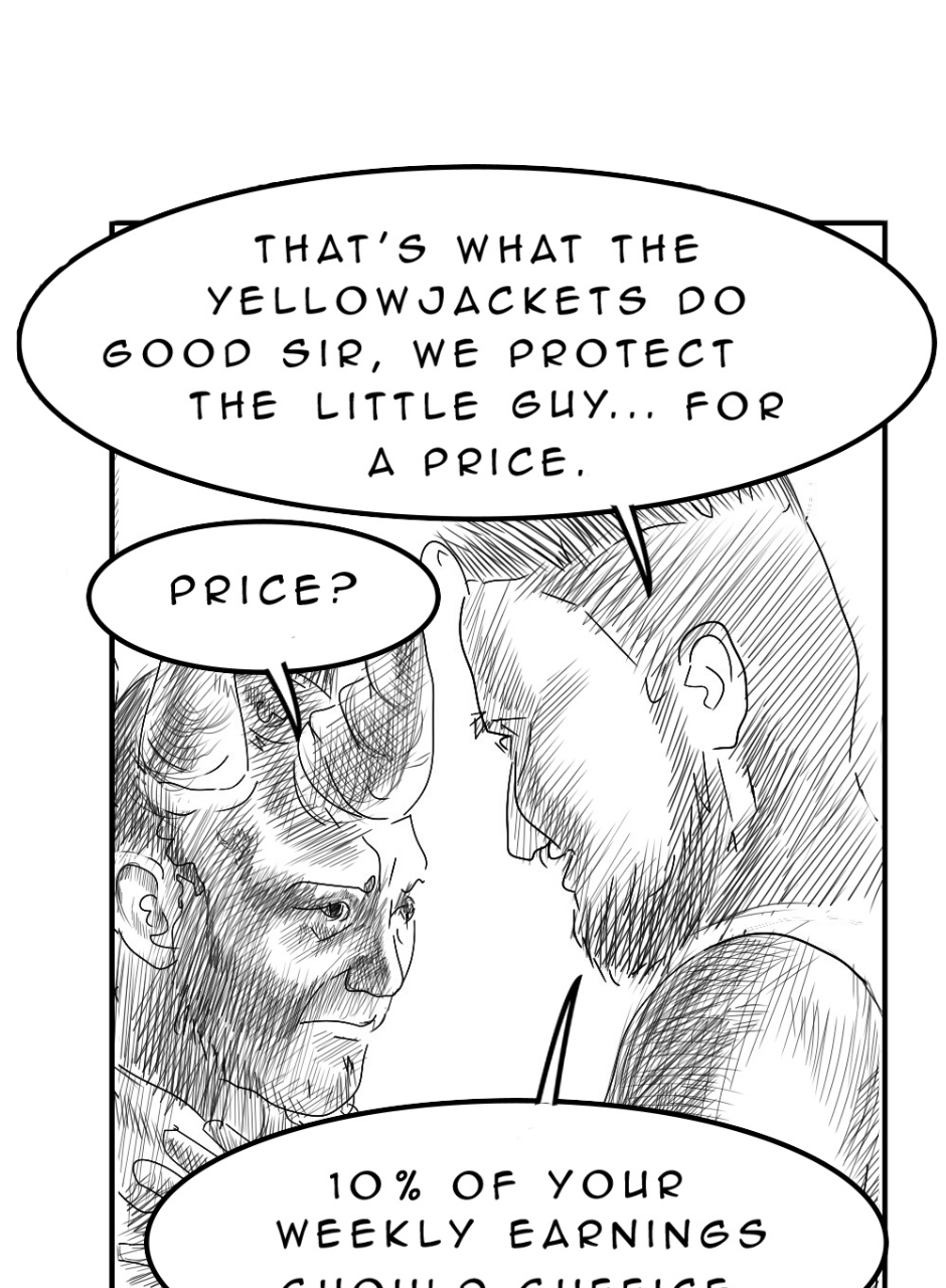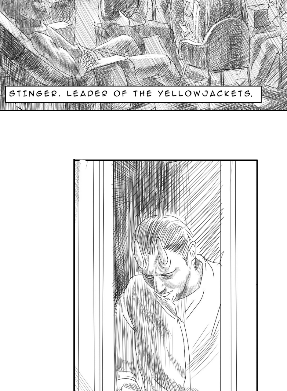 Stinger is the current and most ruthless leader of the Yellowjackets. He never misses an opportunity to increase his revenue streams. -S. M. Olson